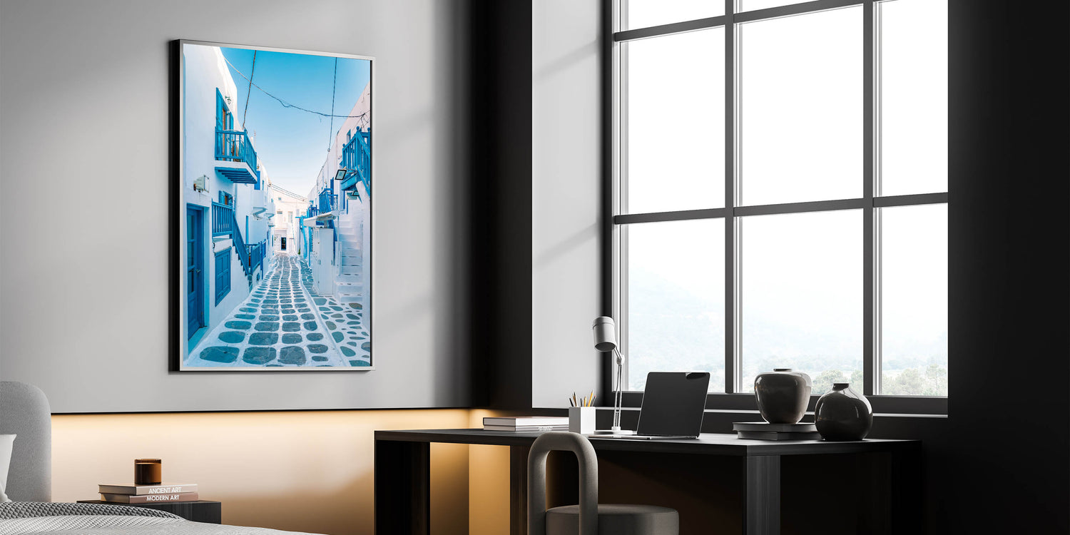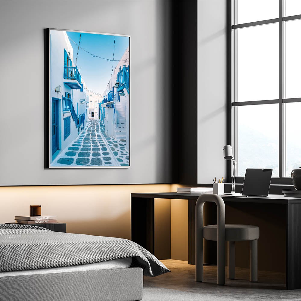 Mykonos Wall Decor - Picturesque Blue & White Streets of Greece