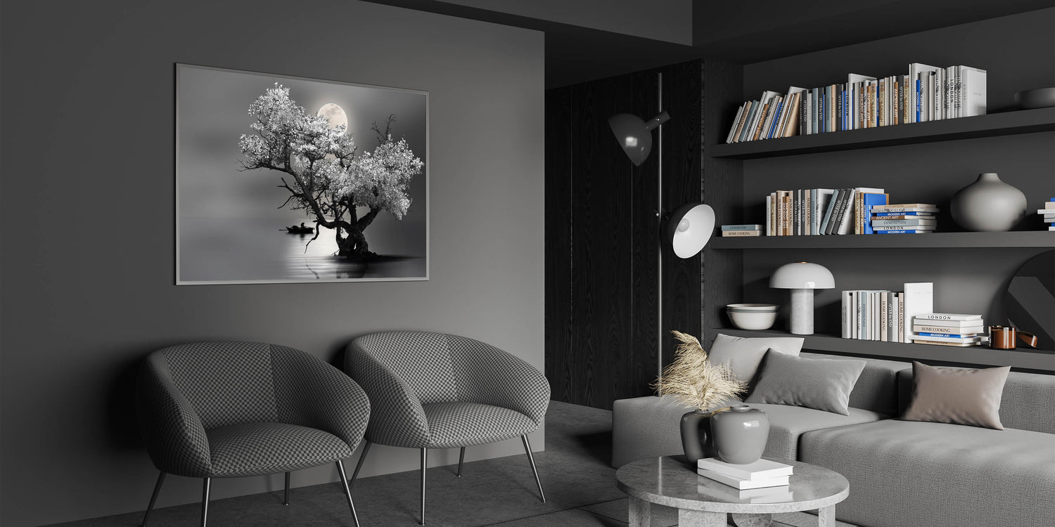 Transform your space with this enchanting black and white landscape that exudes peace and tranquility. Whether you’re a lover of monochrome art or simply seeking a unique piece to elevate your decor, this moonlit tree wall art is sure to inspire and captivate.
