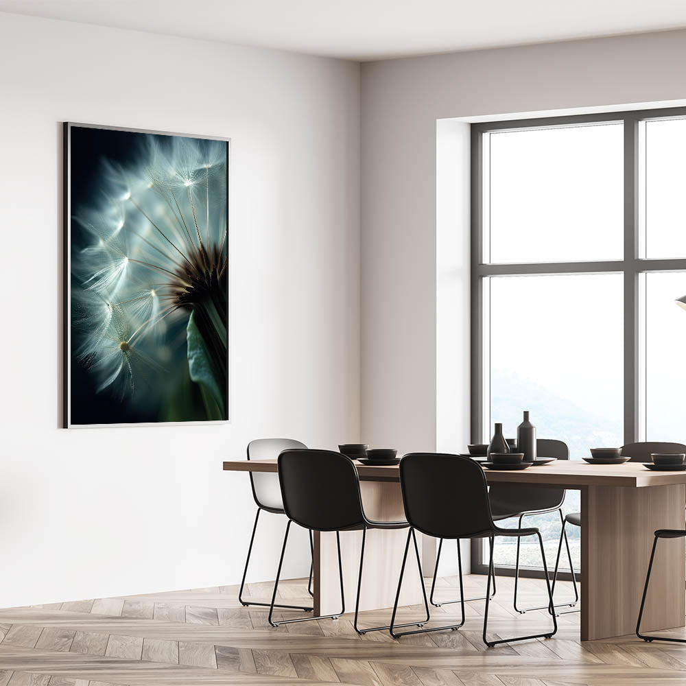 Introduce the beauty of nature into your home with this stunning dandelion-inspired floral wall art. The intricate, close-up detail of the delicate seed head creates a captivating visual that adds elegance and serenity to any room. Perfect for living rooms, bedrooms, or office spaces, this nature-inspired artwork captures the essence of botanical beauty.