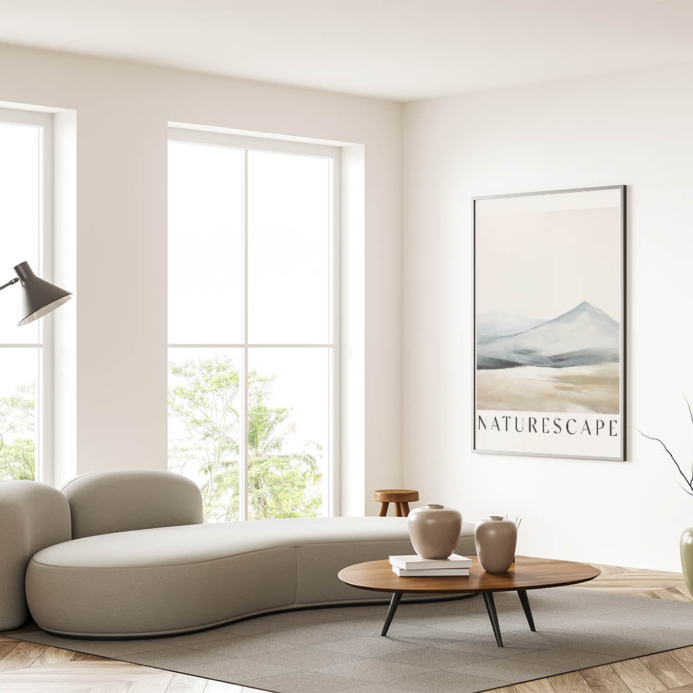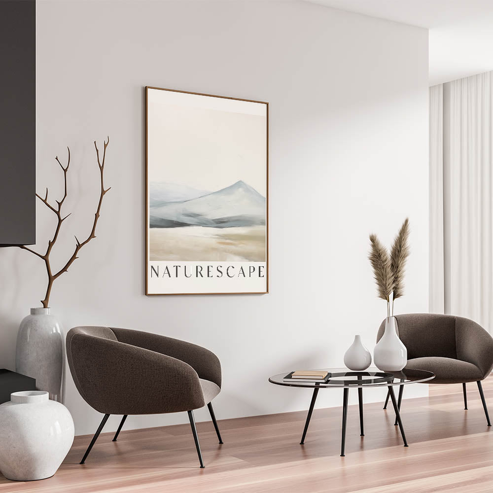 Discover the tranquil beauty of "Naturescape Serenity," a minimalist abstract art piece that embodies the calm and peacefulness of nature’s landscapes. The soft hues of blues and grays blend seamlessly to create a serene depiction of rolling hills, offering a subtle yet captivating focal point for any modern or minimalist decor. This artwork is perfect for those looking to bring a sense of calm and quiet elegance into their living or workspace.