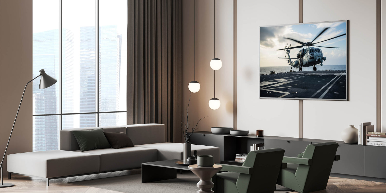 This modern helicopter wall art adds a touch of sophistication to any space. Whether you're looking for aviation-themed wall decor or a transportation print for your living room, this piece offers both style and substance. Transform your environment with this elegant portrayal of air power, a perfect addition for aviation enthusiasts and art lovers alike.