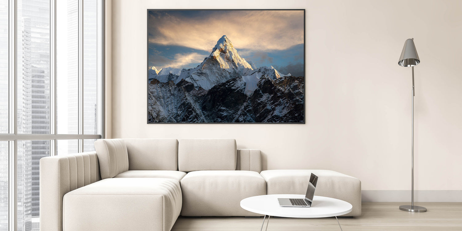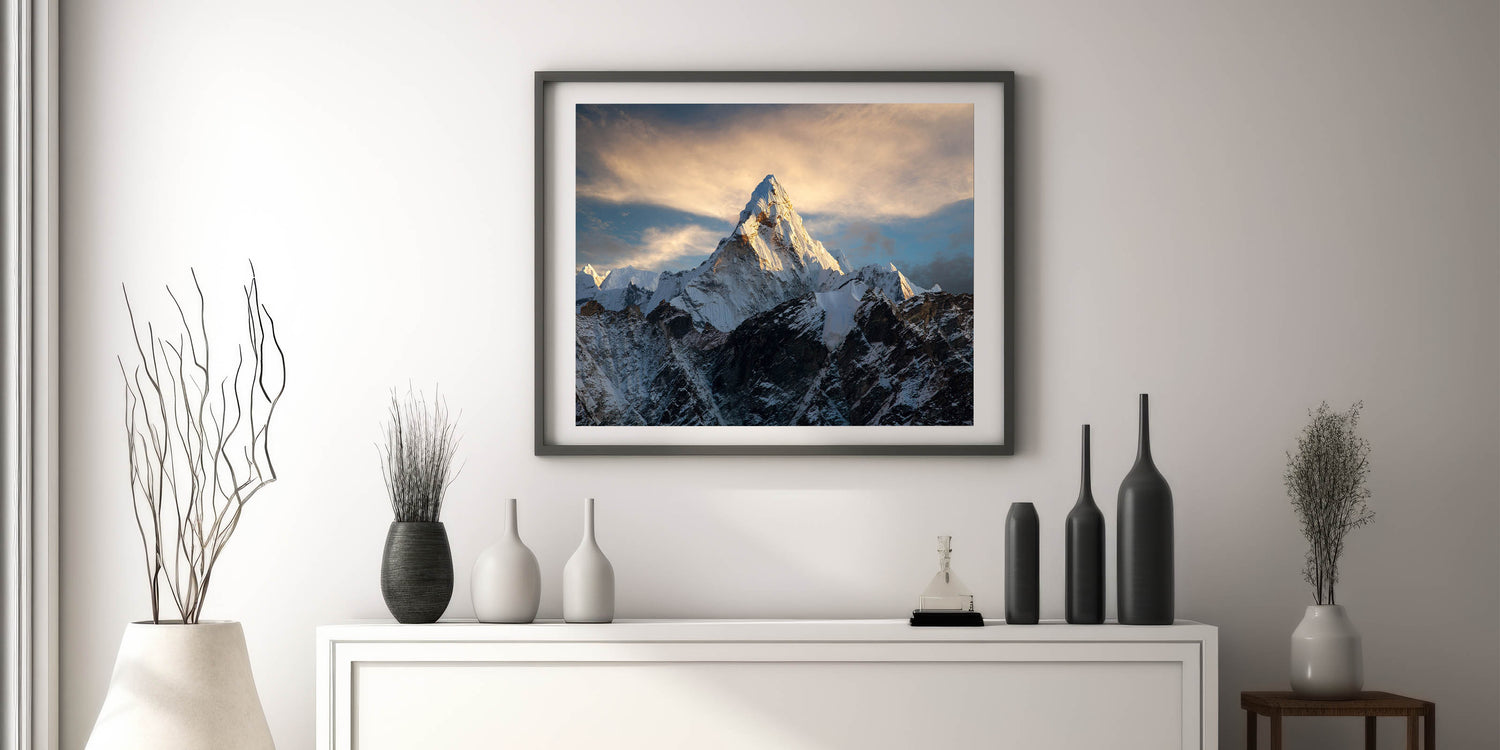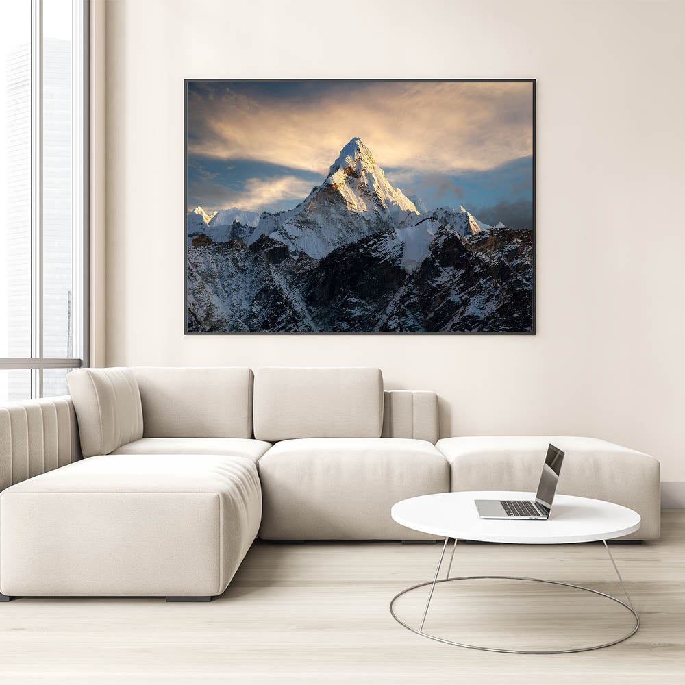 Enhance your space with this peaceful portrayal of Everest, offering a moment of tranquility and beauty to your daily routine.
