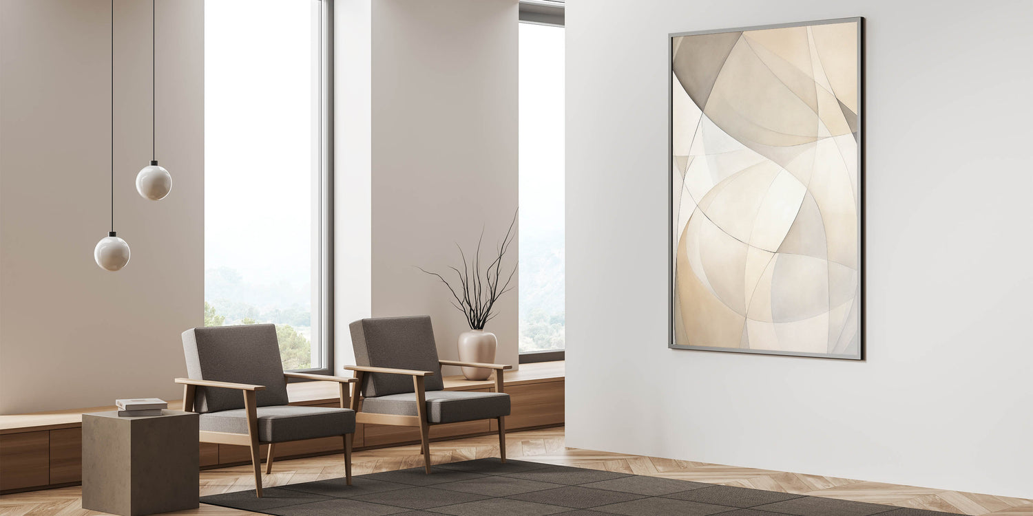 Neutral Minimalist Abstract Art - Modern Geometric Canvas Wall Decor