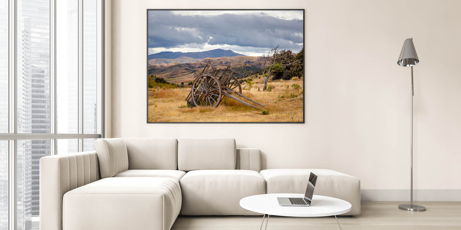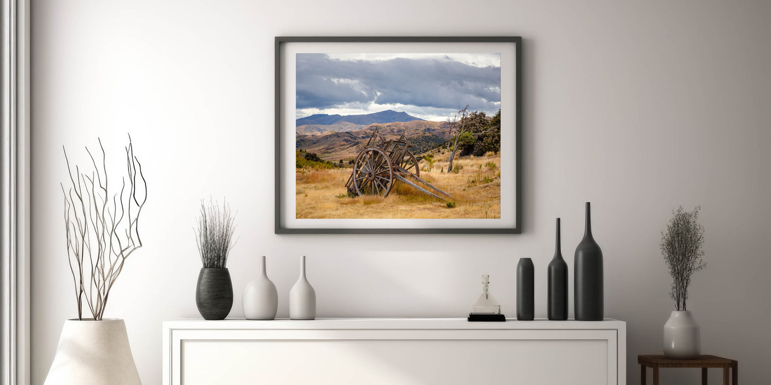Otago Wall Art – Central Otago Landscape with Rustic Cart New Zealand Scenery