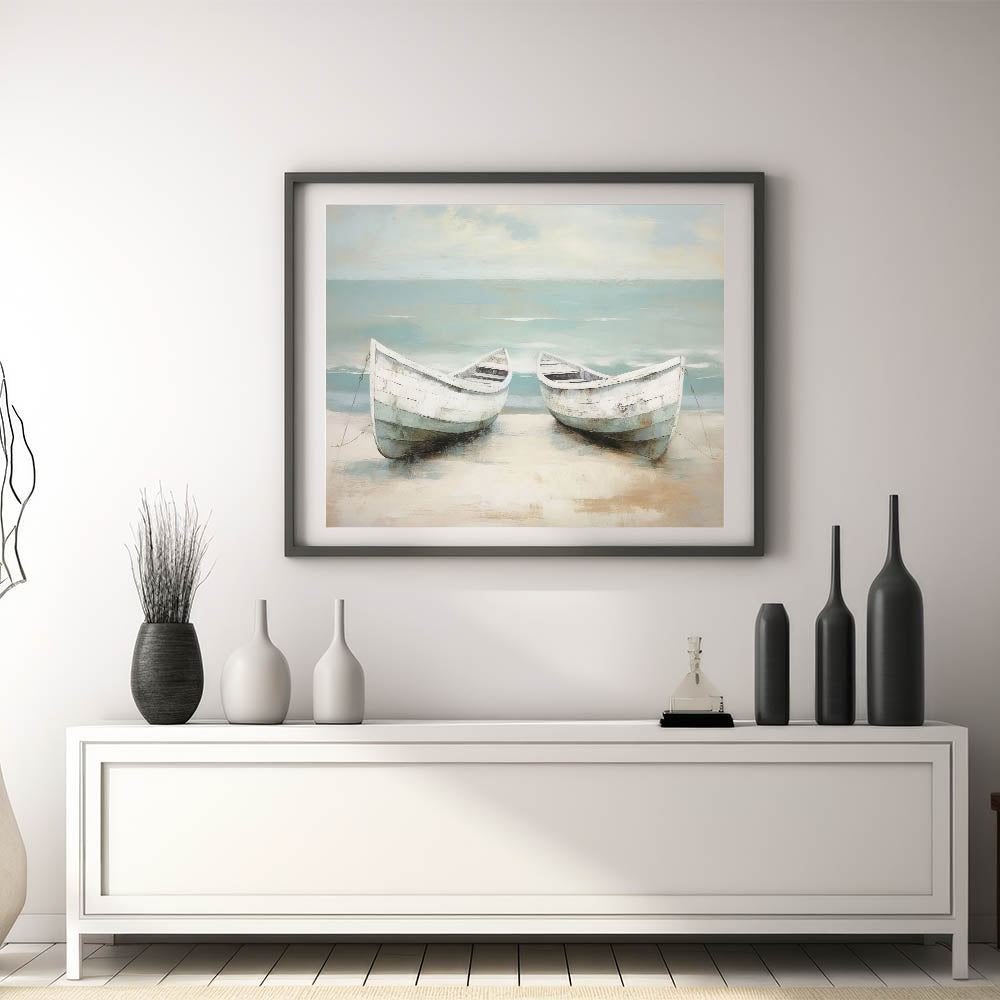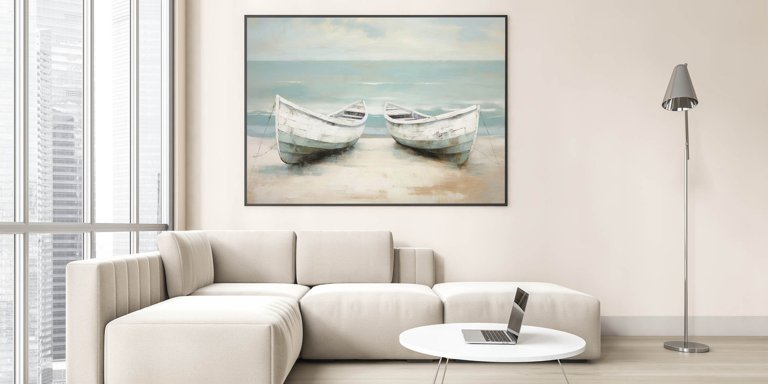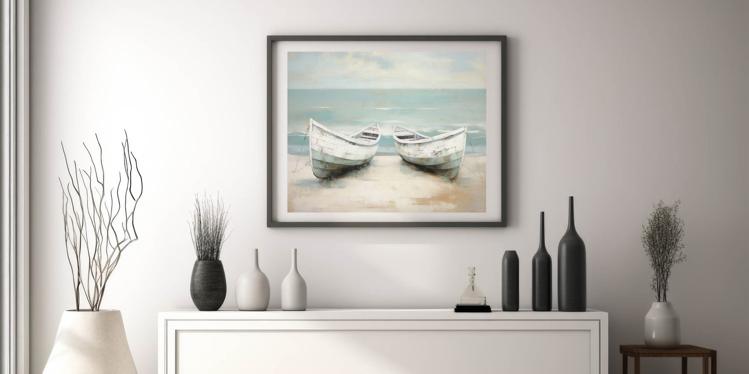 Peaceful Coastal Rowboat Art - Nautical Decor for Calm Interiors