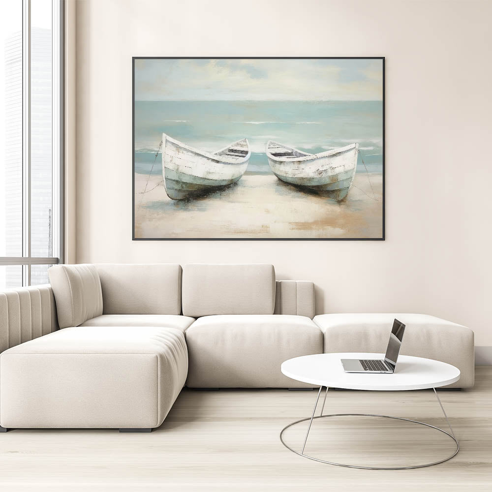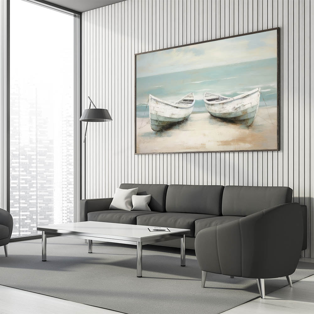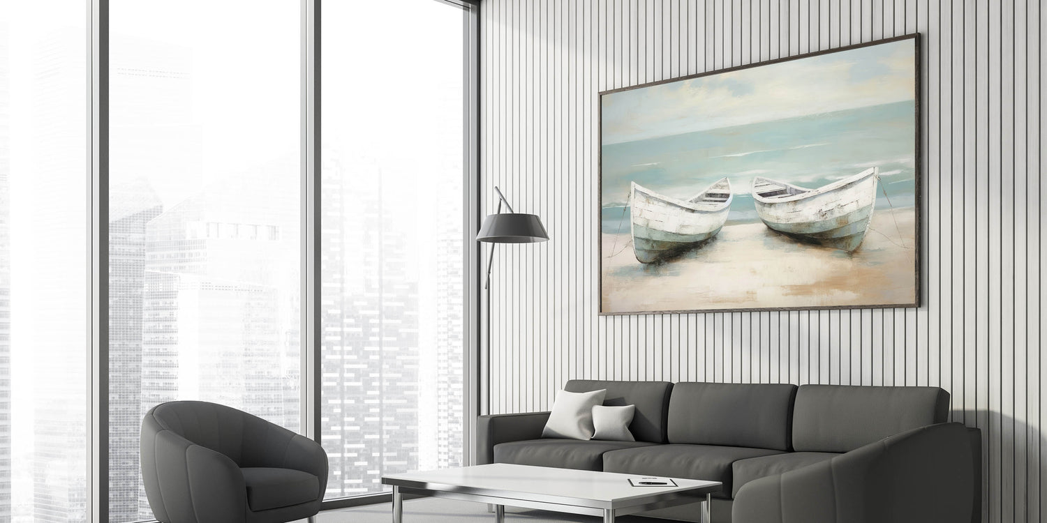 Peaceful Coastal Rowboat Art - Nautical Decor for Calm Interiors
