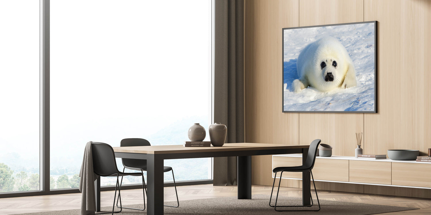 This stunning artwork is perfect for adding a sense of calm and joy to any room. Whether it’s for a nursery, living space, or office, the endearing image of the baby seal will bring a smile to anyone’s face. Capture the serenity and innocence of Arctic wildlife with this beautiful wall decor today!