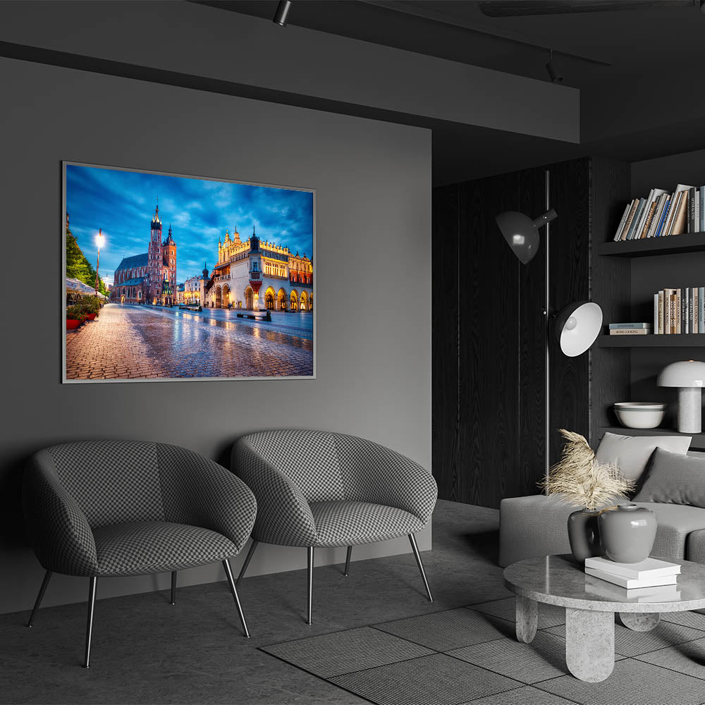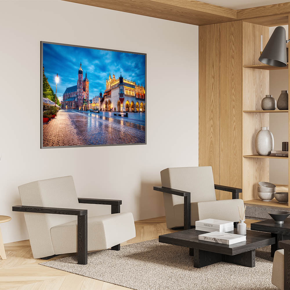 - Evening Ambiance: The print features the market square bathed in the soft light of dusk, enhancing its timeless appeal.