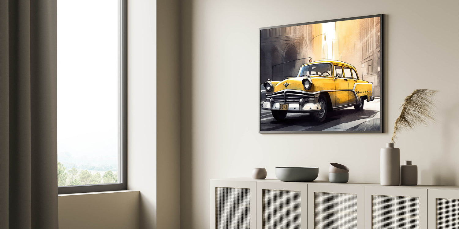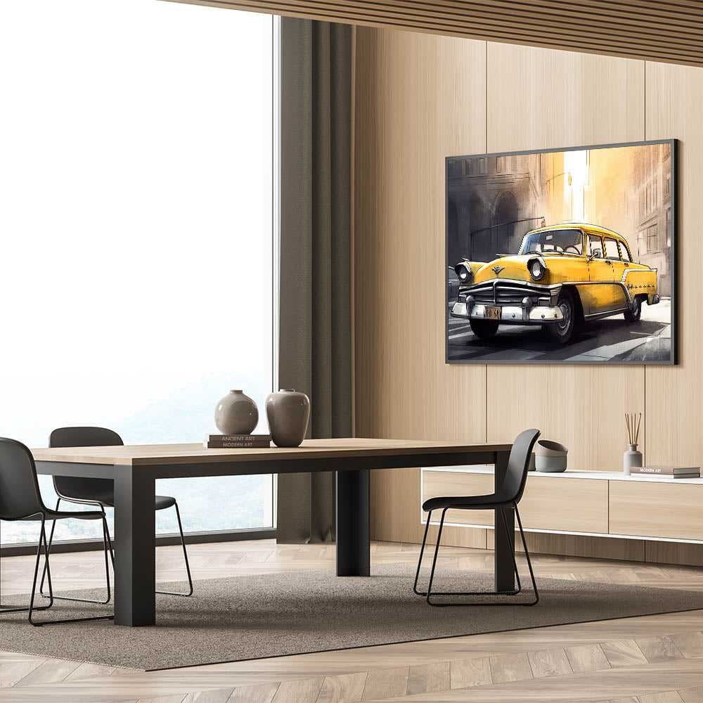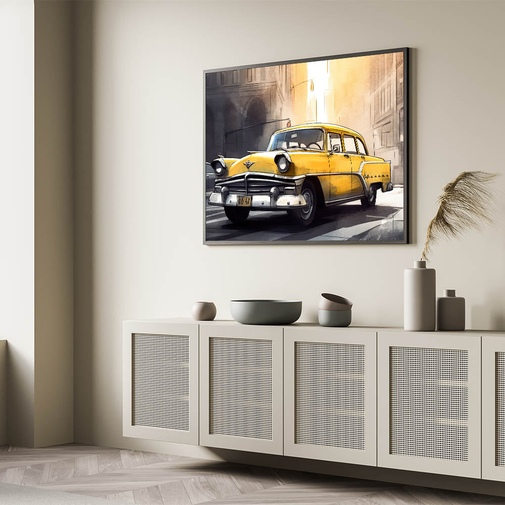 Let this taxi-inspired art decor bring the charm and vibrancy of old New York to your walls. Whether you're decorating your living room, office, or any other space, this artwork is a perfect addition to your collection.