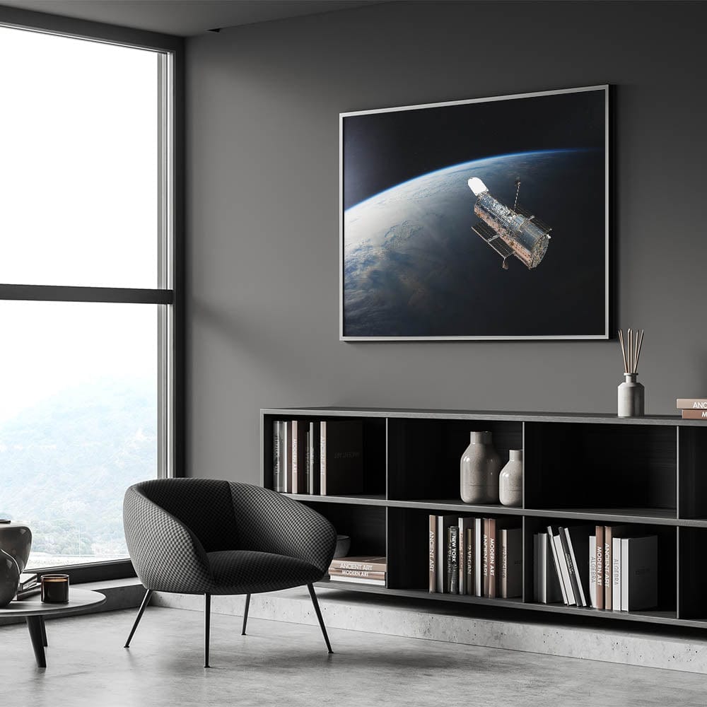 Satellite Orbiting Earth - Stunning Cosmic Wall Art for Home Decor