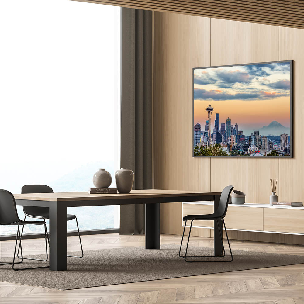 - Brilliant colors and sharp details bring the Seattle skyline to life