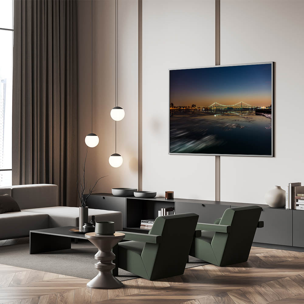 This Detroit cityscape art piece adds a soothing and elegant touch to any room. Whether you’re decorating a modern interior or creating a peaceful retreat in your home, this artwork will enhance your space with its tranquil evening glow.