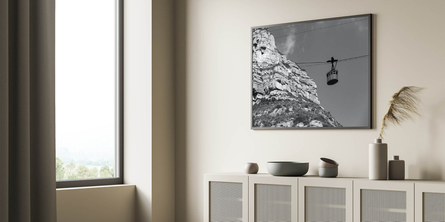 - High-resolution print that beautifully captures the cable car against the mountainous backdrop