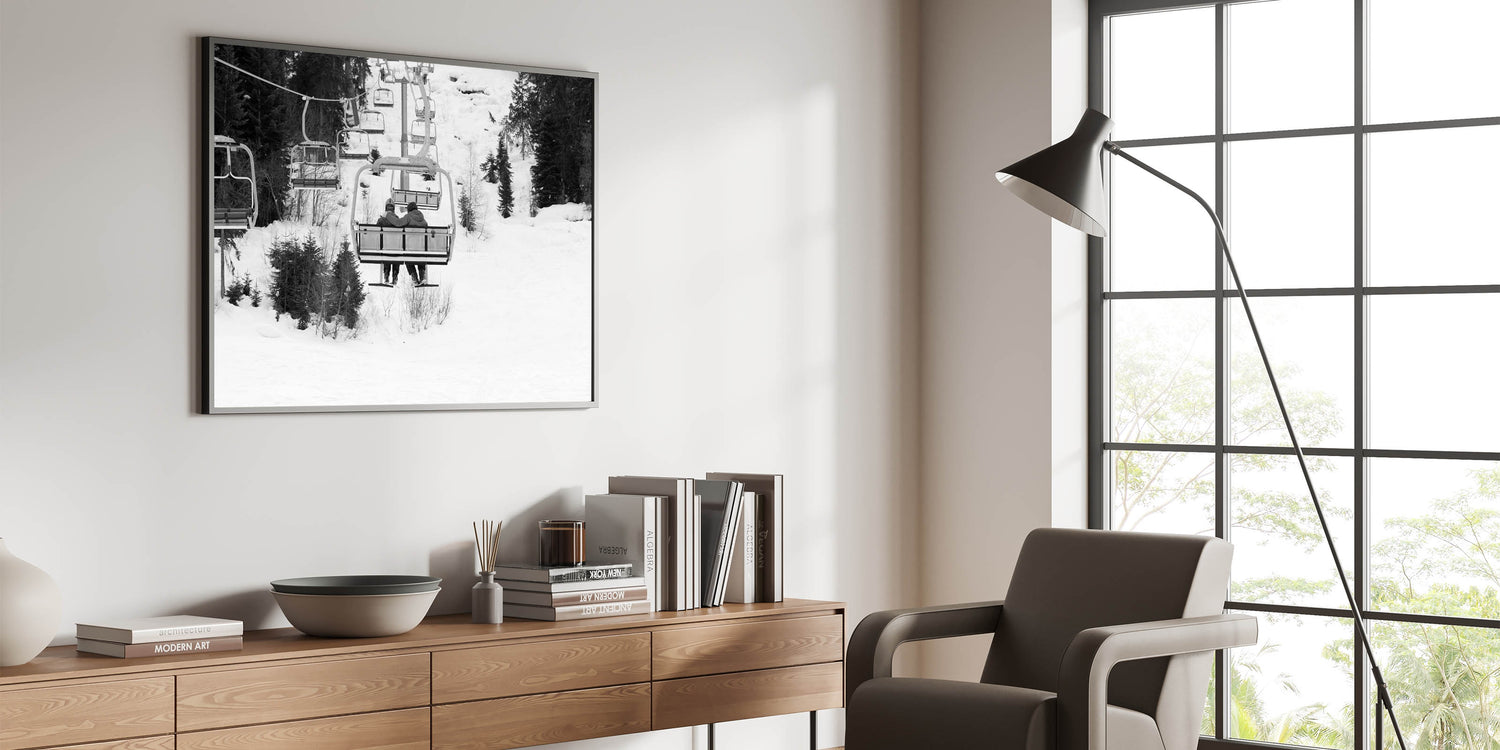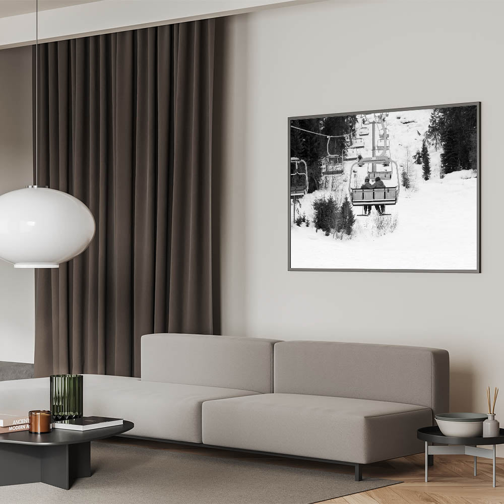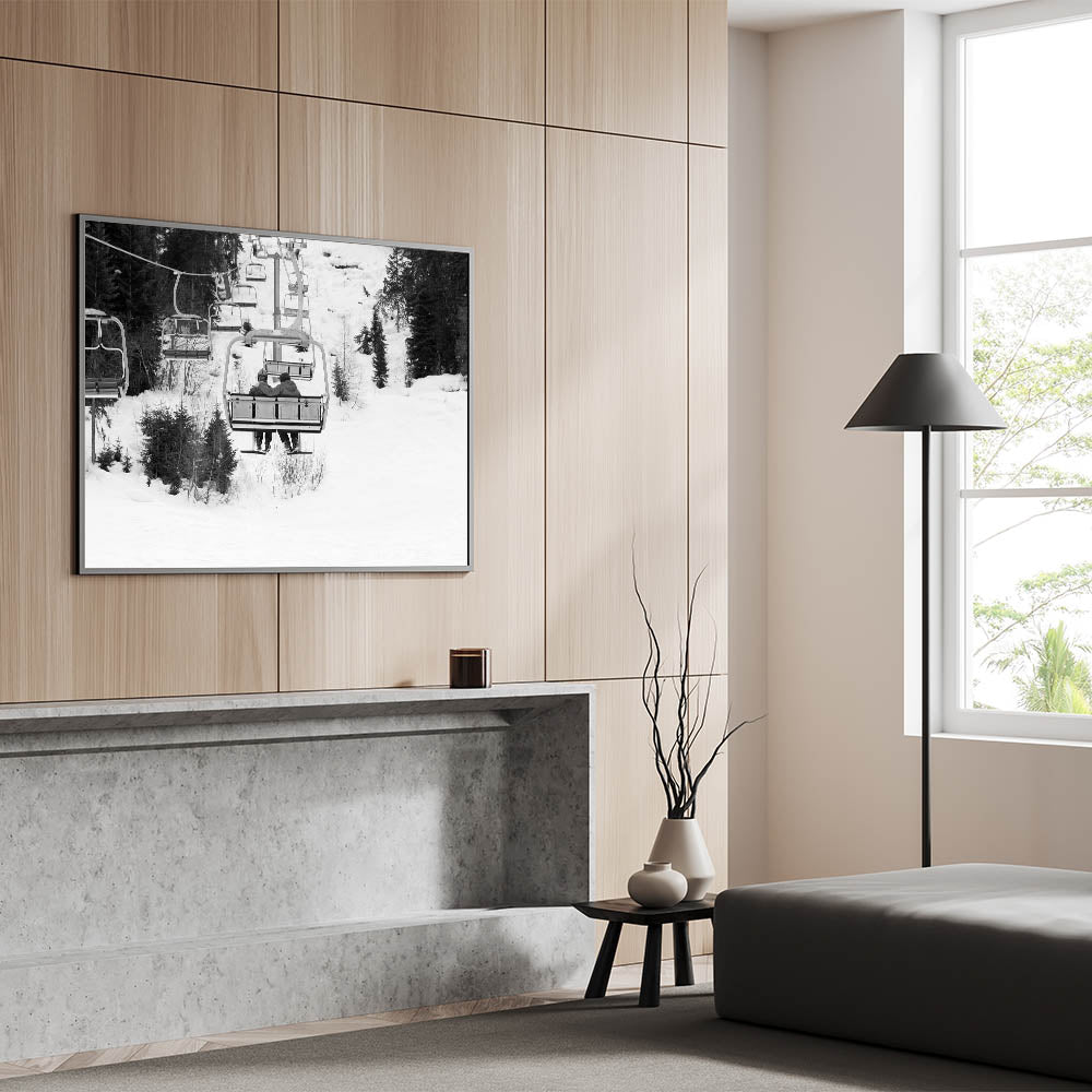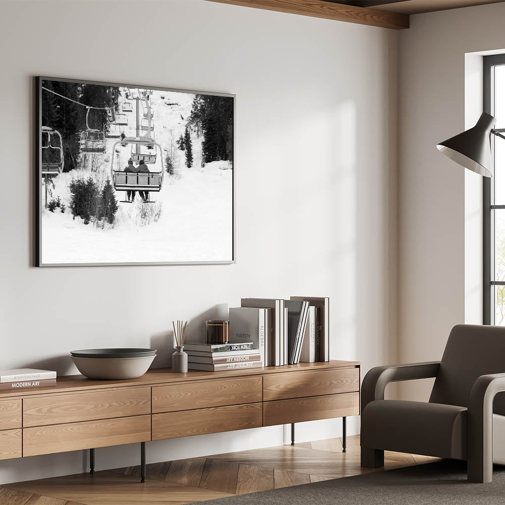 Service Vehicles Wall Art - Serene Ski Lift Ride in Snowy Mountains Print