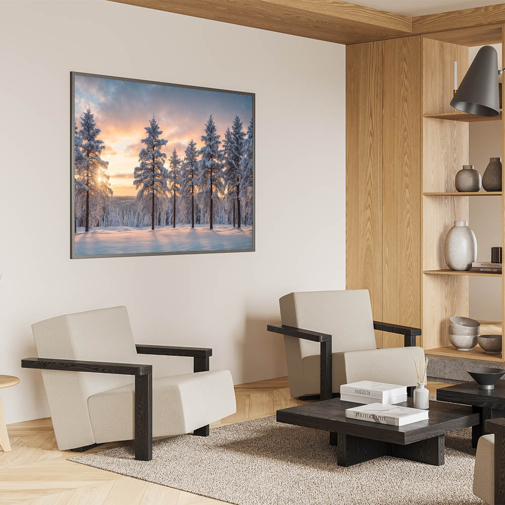 - Versatile Decor: Ideal for living rooms, bedrooms, or any space that could benefit from the serene ambiance of a winter morning.