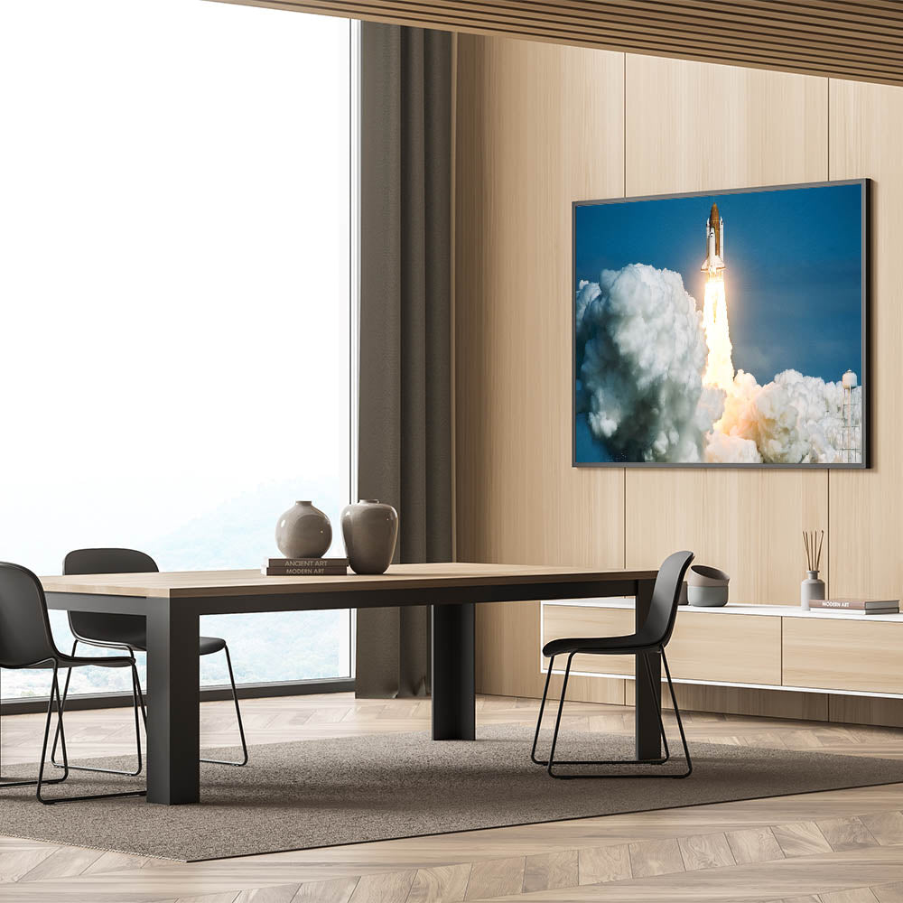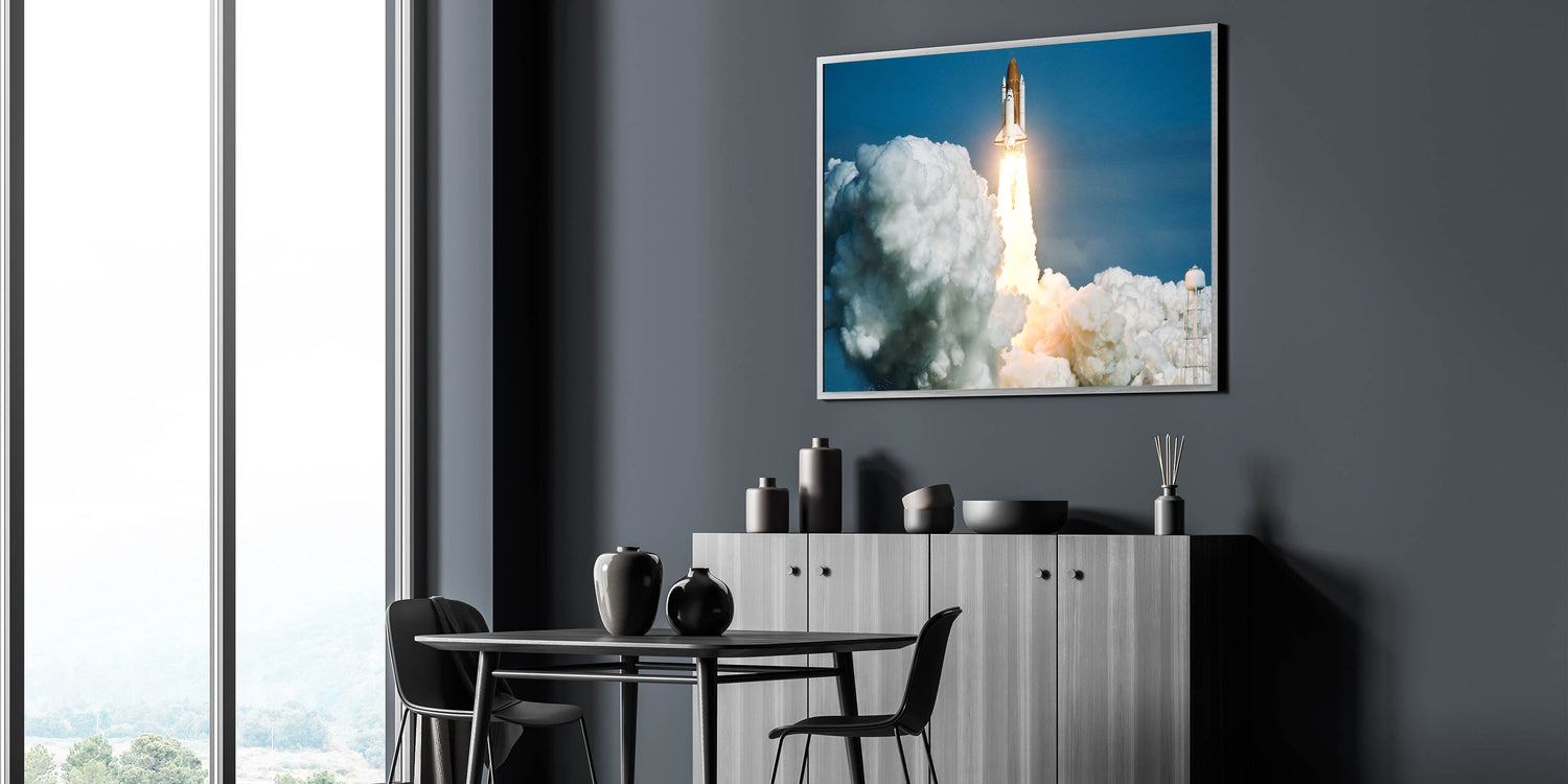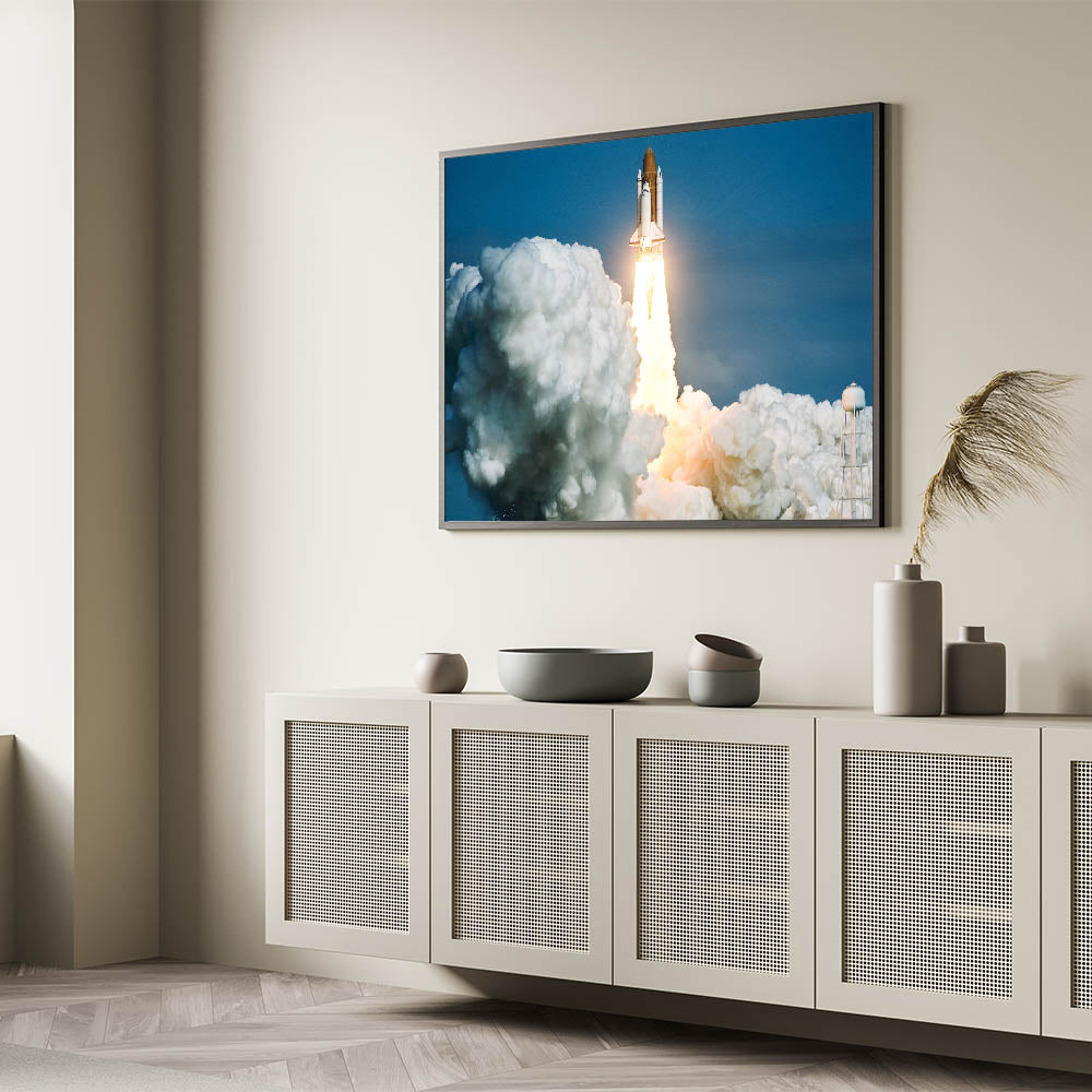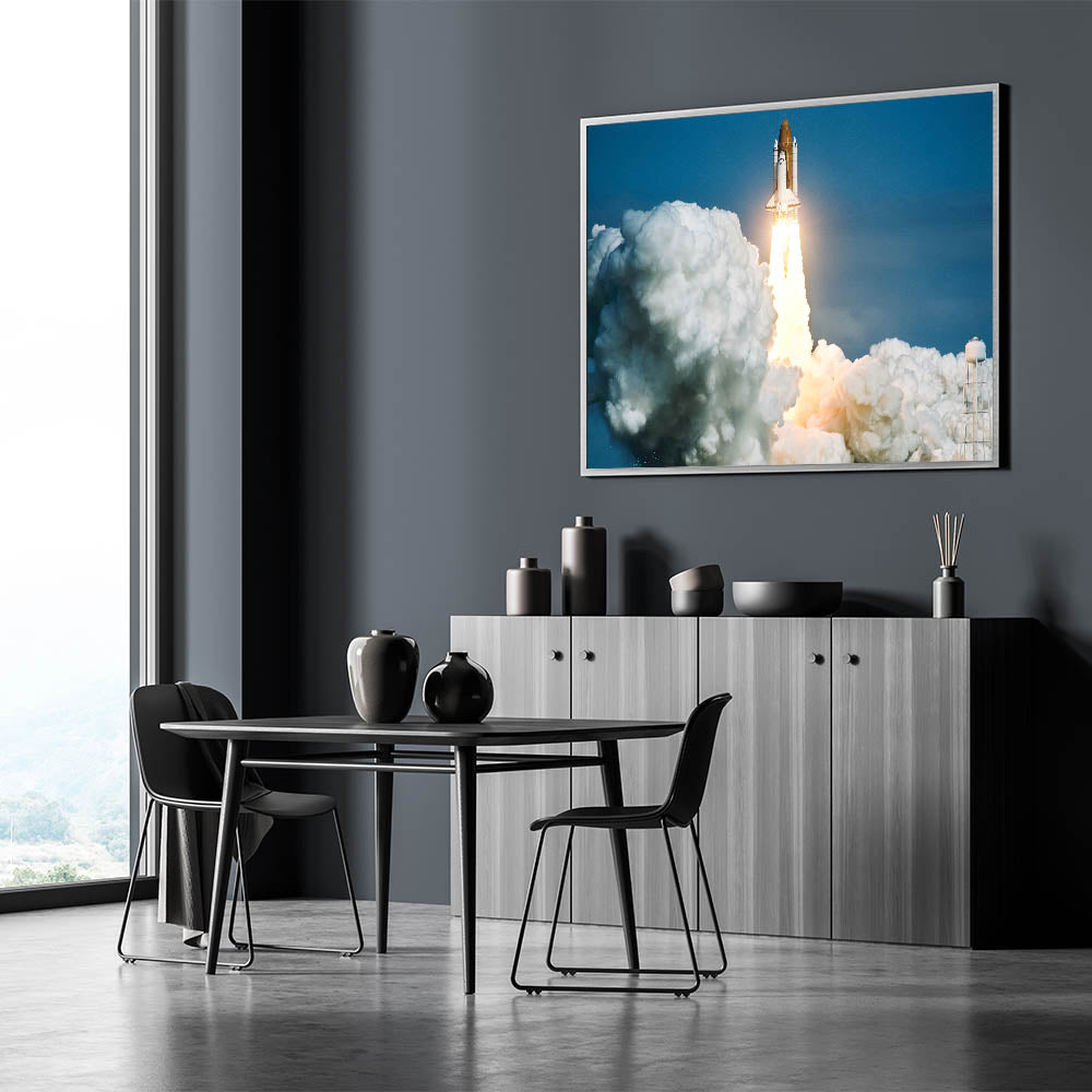 Bring the awe of space exploration into your home with this captivating wall art featuring a space shuttle liftoff. This dynamic piece captures the powerful moment of launch, showcasing the immense power and engineering marvel of space travel. Perfect for space enthusiasts and lovers of adventure, this artwork adds an inspiring touch to any room, whether it's your living room, office, or study.