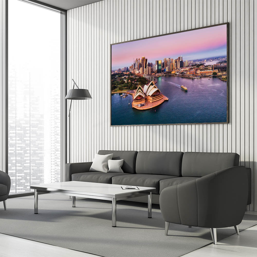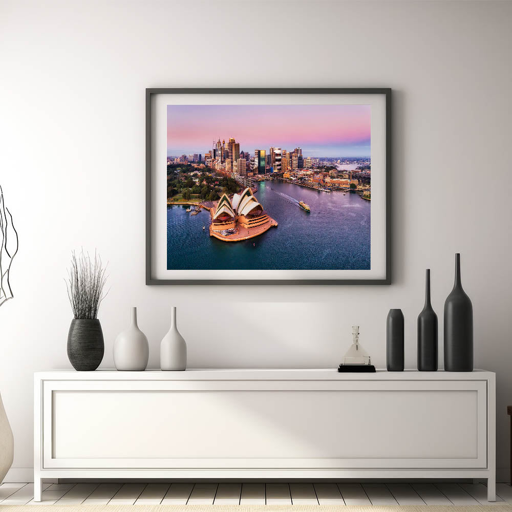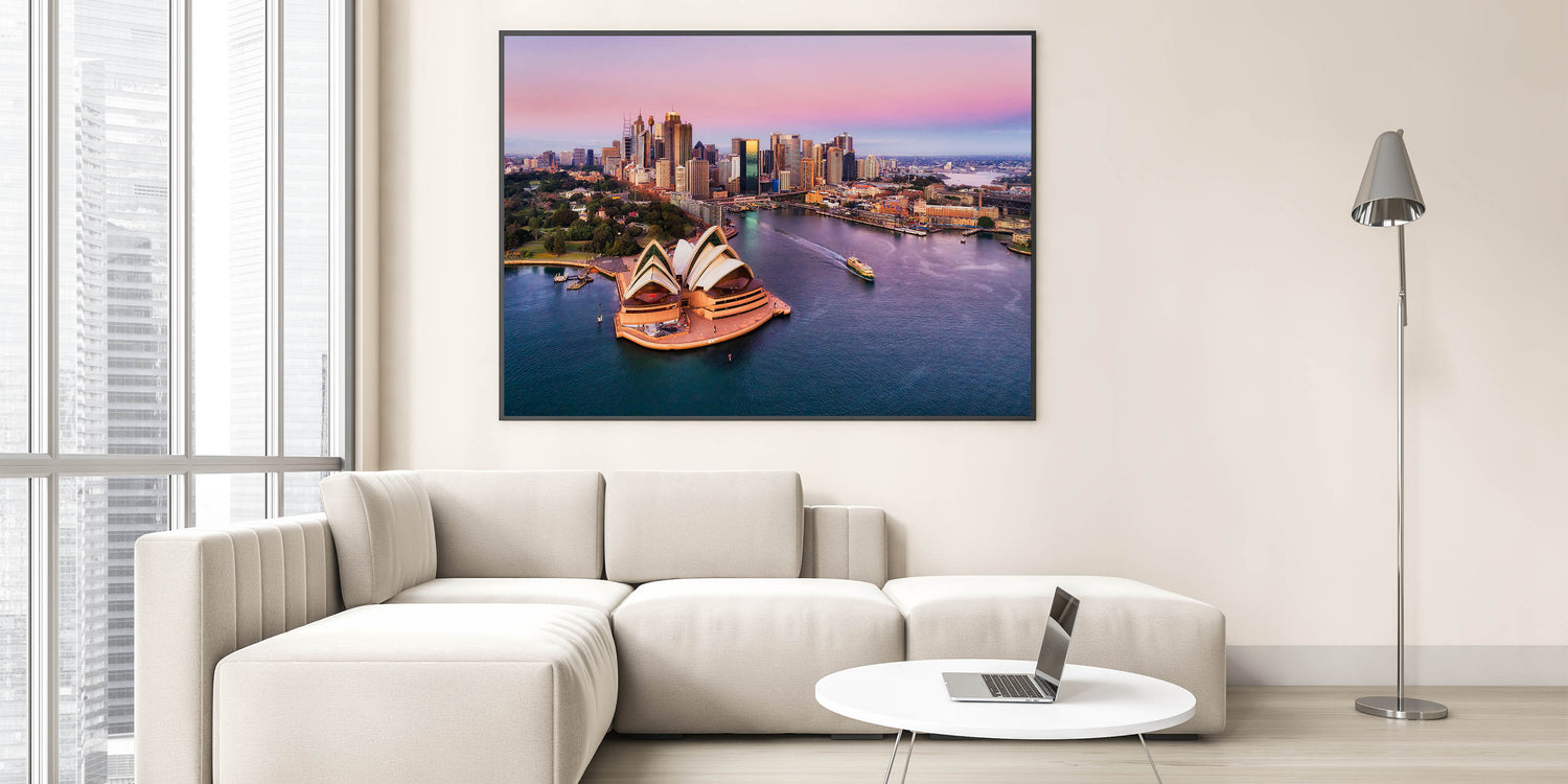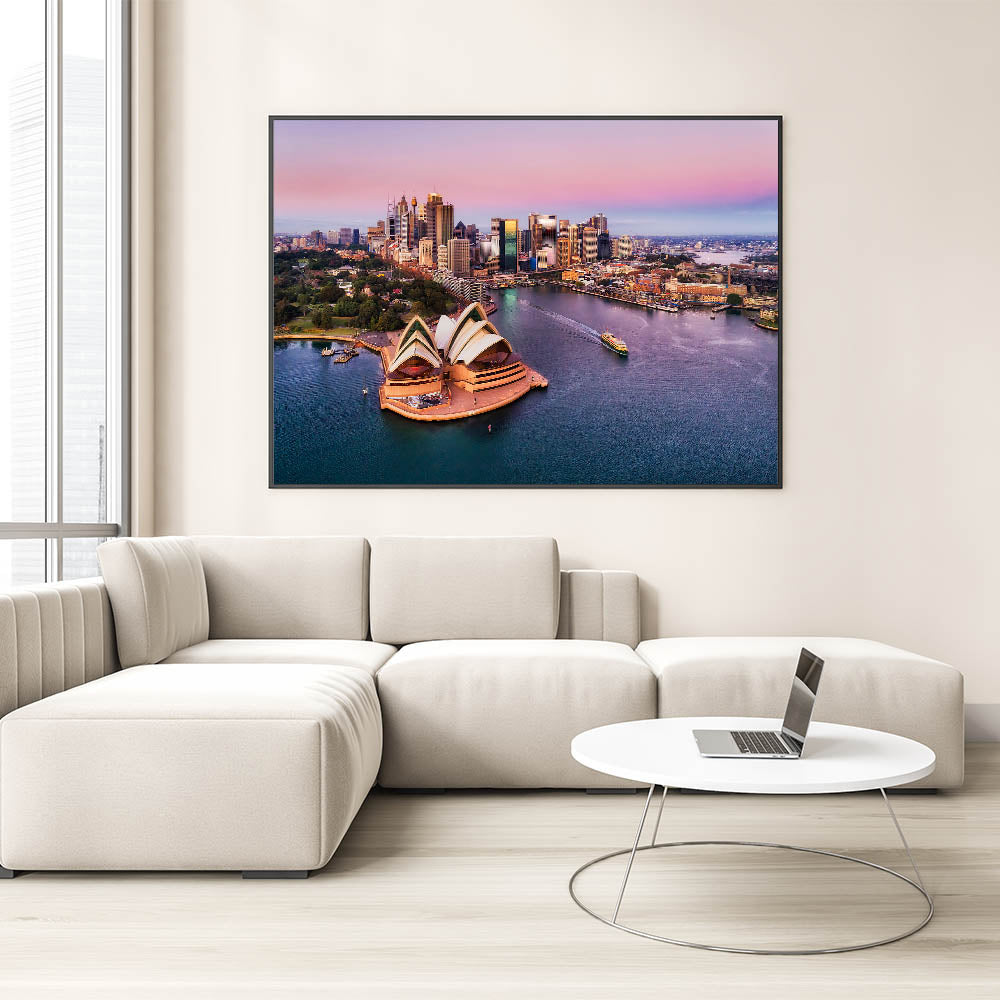 Elevate your interior with this unique Sydney city decor piece. Whether you prefer a modern acrylic glass finish or a classic framed canvas, this artwork will make a statement in any room. Order now to enhance your living space with a touch of Sydney's charm.