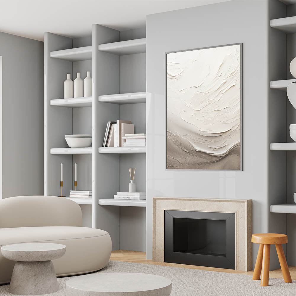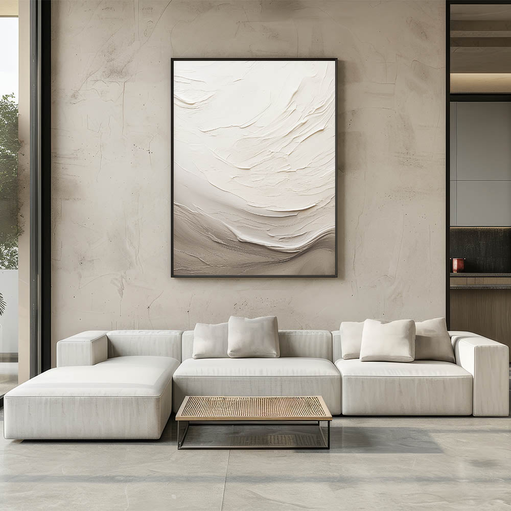 Introduce a touch of elegance and subtle sophistication to your space with this textured abstract wall art. The artwork features a flowing blend of neutral cream and beige tones, creating a soft, serene aesthetic that is perfect for modern, minimalist, or contemporary interiors. The textured finish adds depth and dimension, making this piece a standout addition to any room.