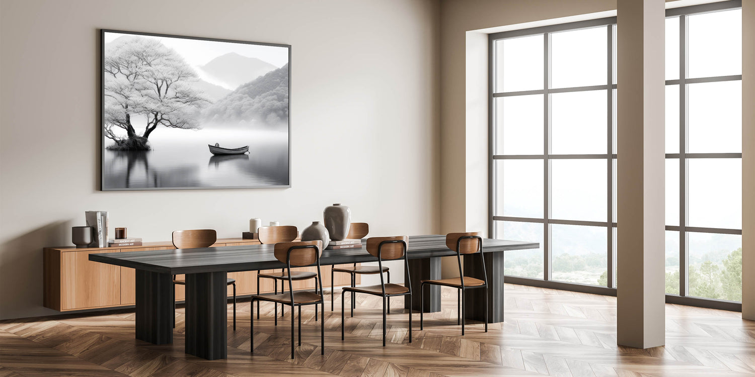 Transform your space with this serene black and white landscape, a perfect addition for those who appreciate the beauty of minimalism. Whether you’re looking to create a calming environment or simply add a sophisticated piece of art to your collection, this artwork is sure to inspire.