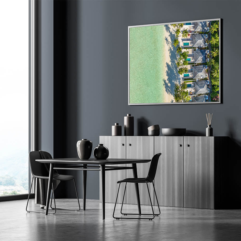 This canvas print brings a slice of paradise into your home, making it perfect for those looking to add a serene and luxurious touch to their decor. Ideal for living rooms, offices, or as a gift for lovers of tropical destinations.