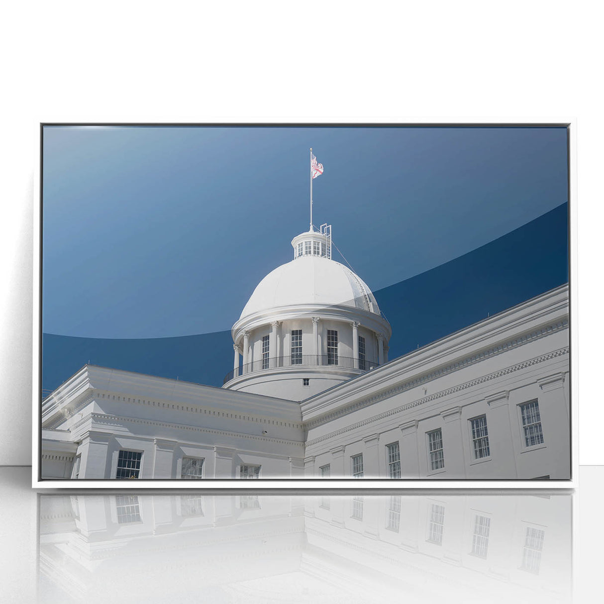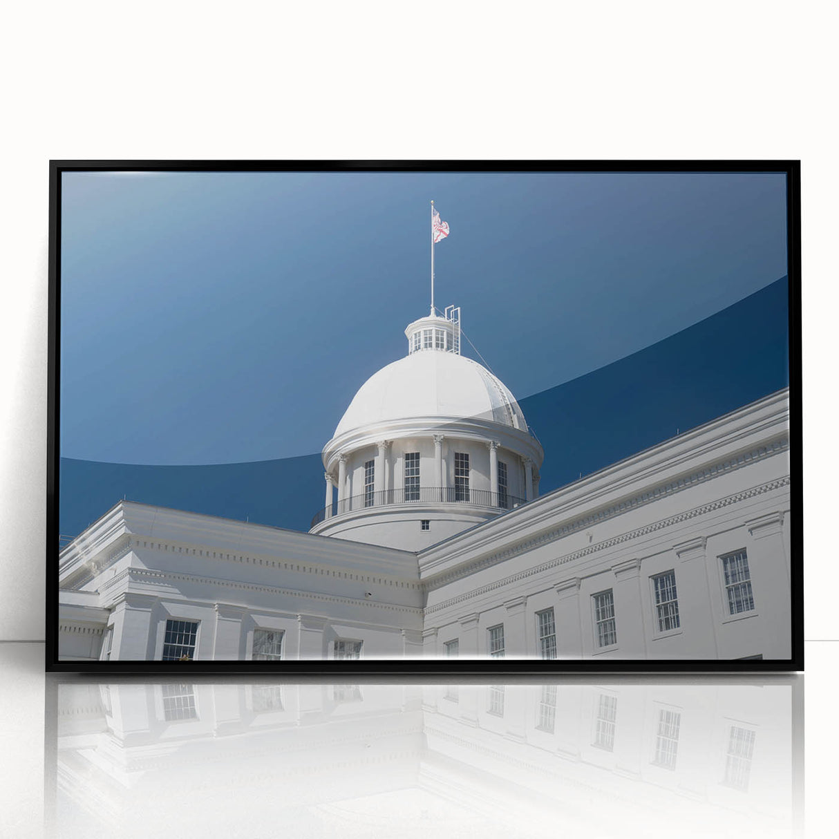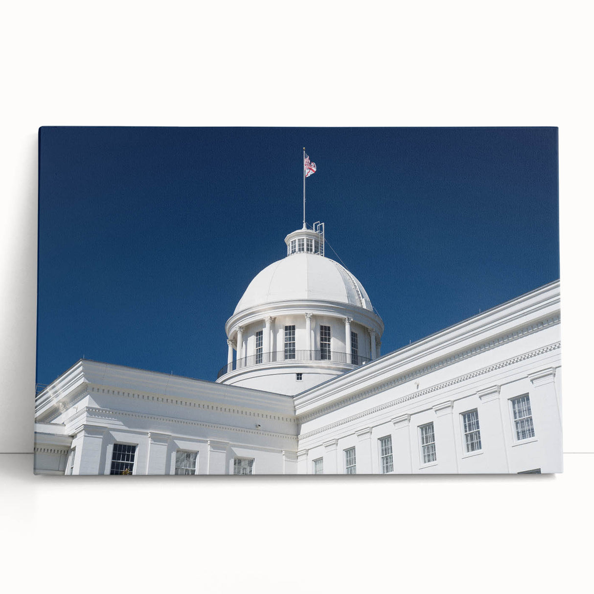 - High-Quality Prints: This Alabama landscape print is meticulously crafted to showcase the fine architectural details and the brilliance of the white dome against the vibrant sky.