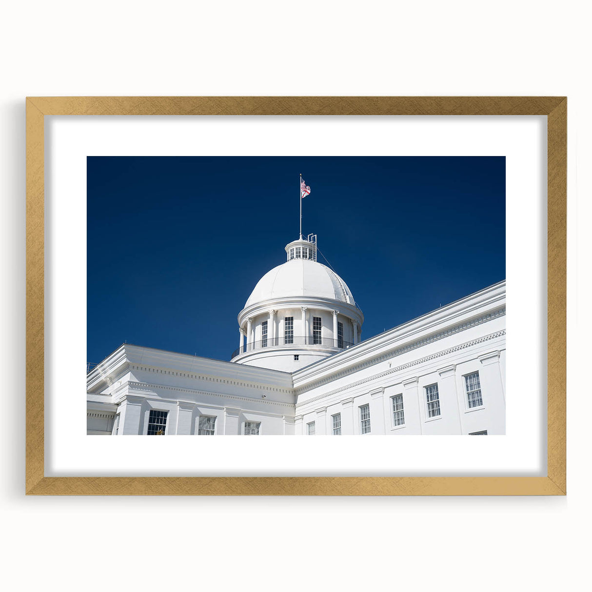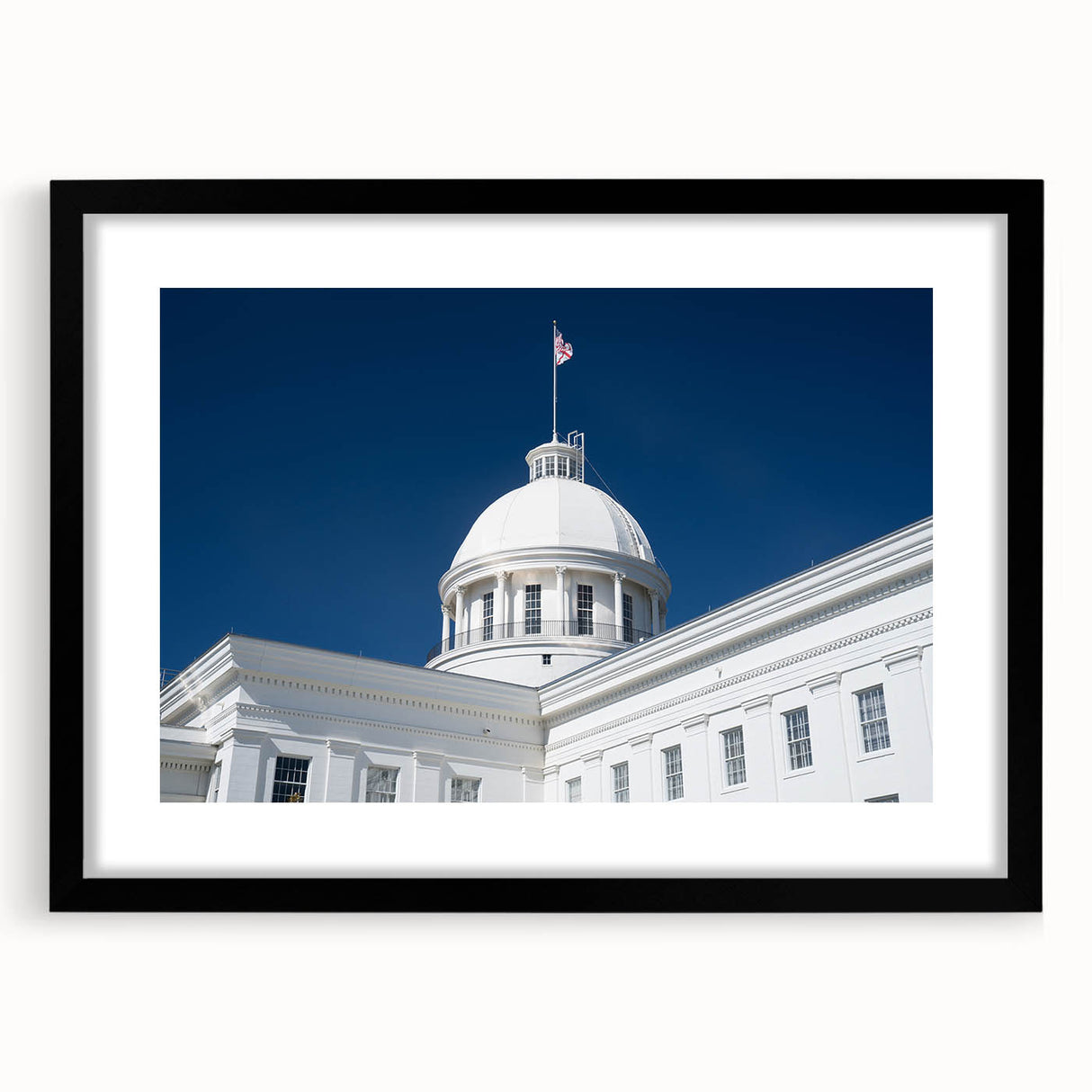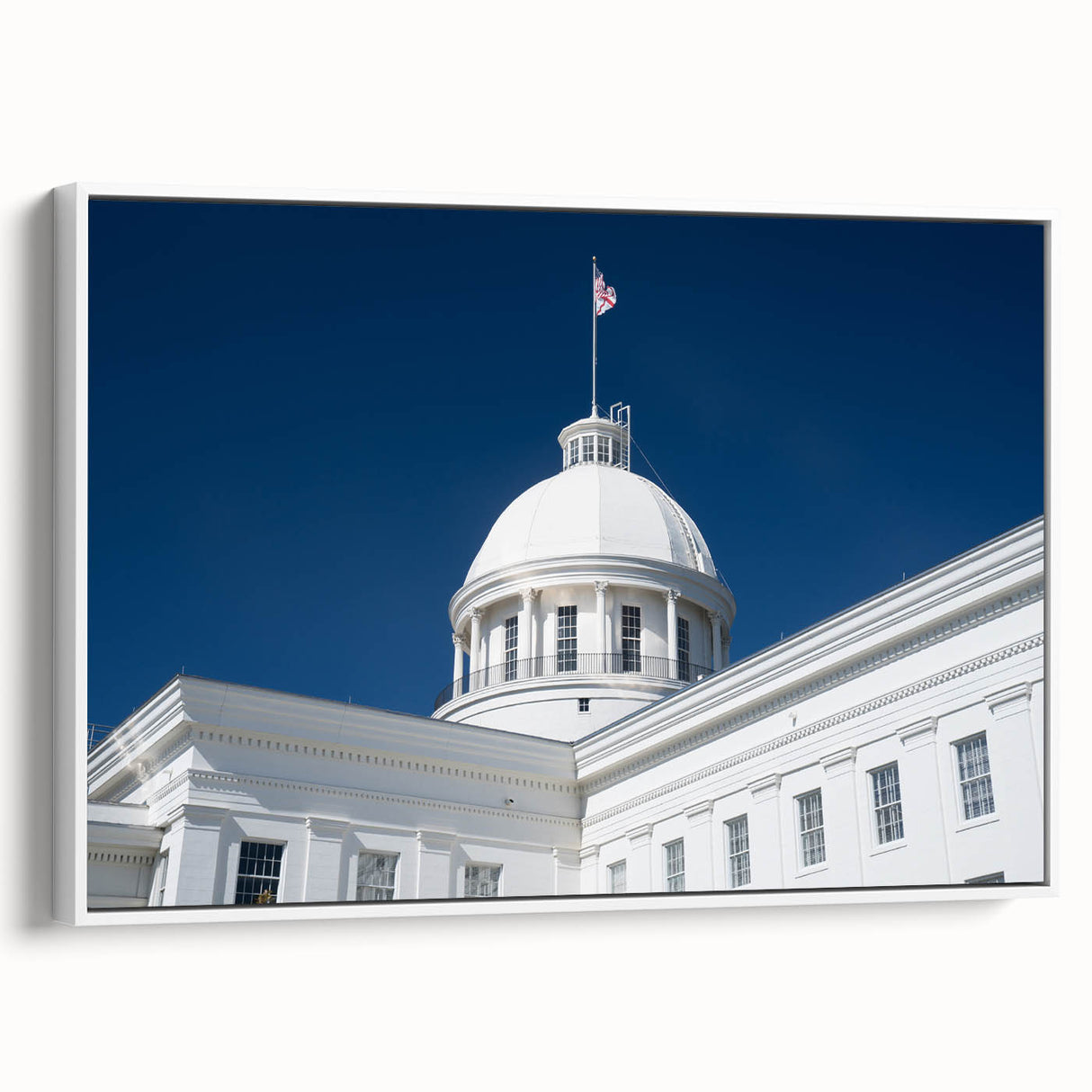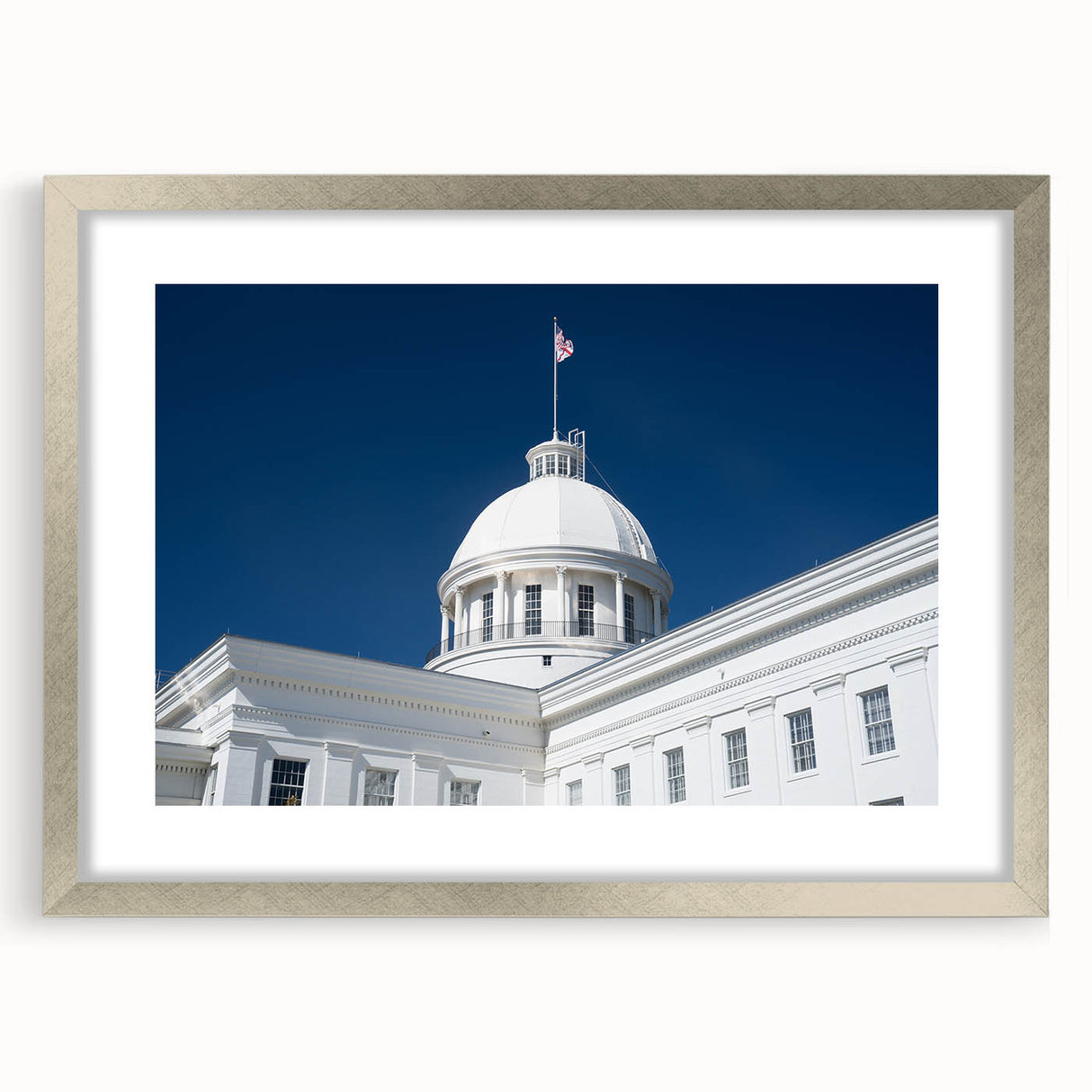 - High-Quality Prints: This Alabama landscape print is meticulously crafted to showcase the fine architectural details and the brilliance of the white dome against the vibrant sky.
