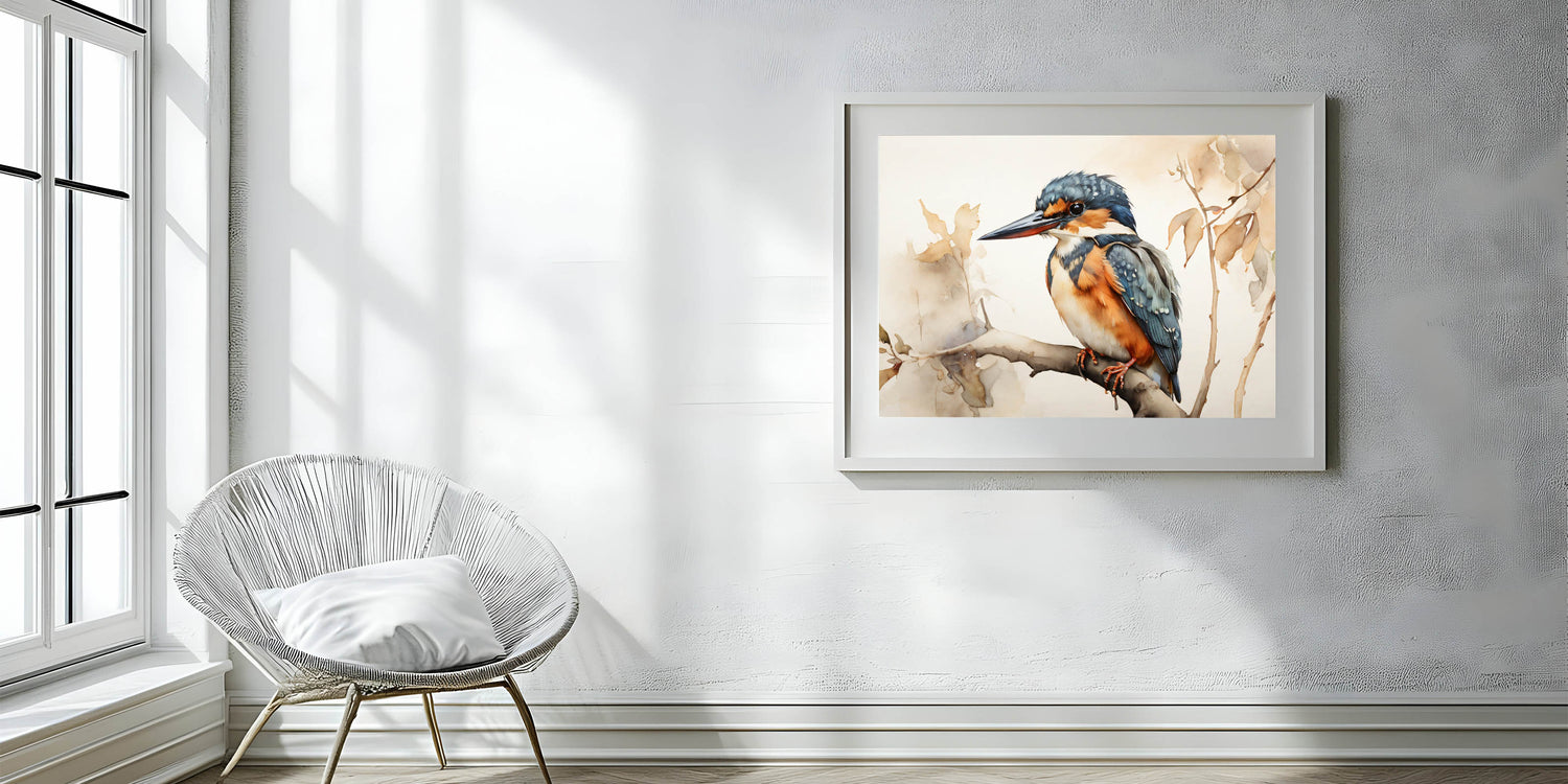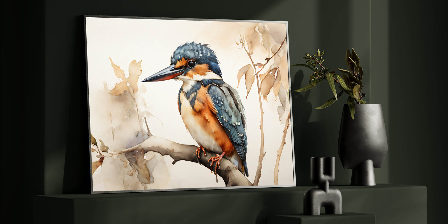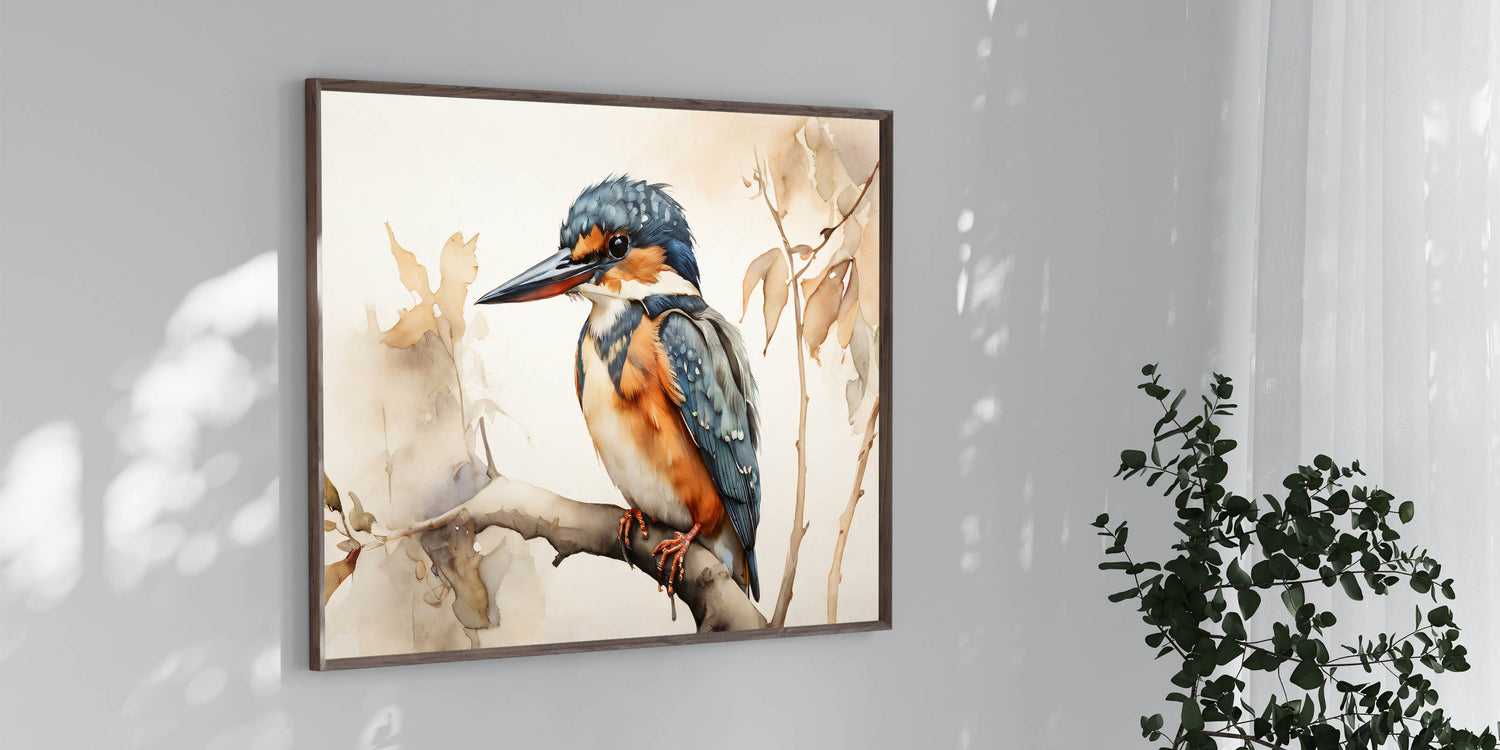 Add a touch of elegance to your space with this beautifully crafted Tropical Bird wall art, featuring a delicate watercolor-style depiction of a kingfisher perched on a branch. The soft tones and gentle brushstrokes create a serene and calming atmosphere, making this artwork a perfect addition to any room. Whether you choose a stretched canvas, framed print, or acrylic glass, this piece will bring a subtle yet striking natural beauty to your home.