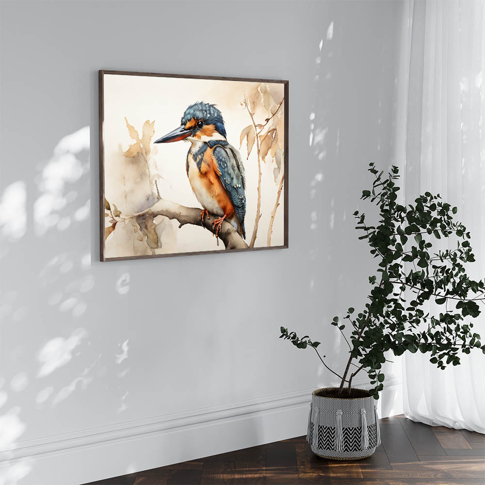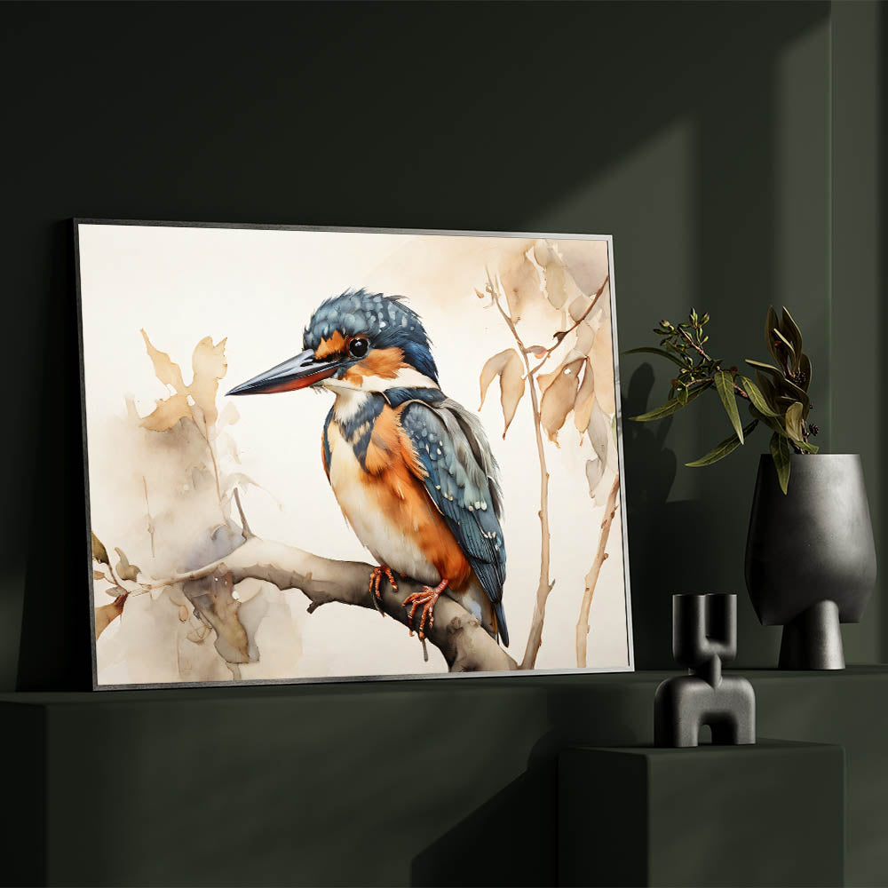 Watercolor Kingfisher Wall Art - Elegant Tropical Bird Canvas Print - Framed Art