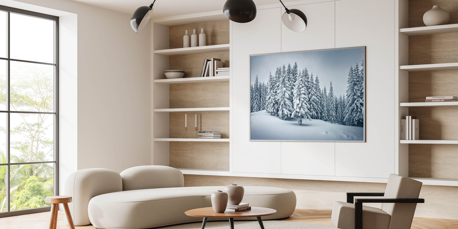 This winter forest wall art is ideal for adding a refreshing, nature-inspired touch to your decor. The snow-covered trees and soft hues create a calming environment, making it perfect for both modern and rustic interiors. Whether as a centerpiece or part of a gallery wall, this winter scene adds a touch of natural beauty to your home or office.