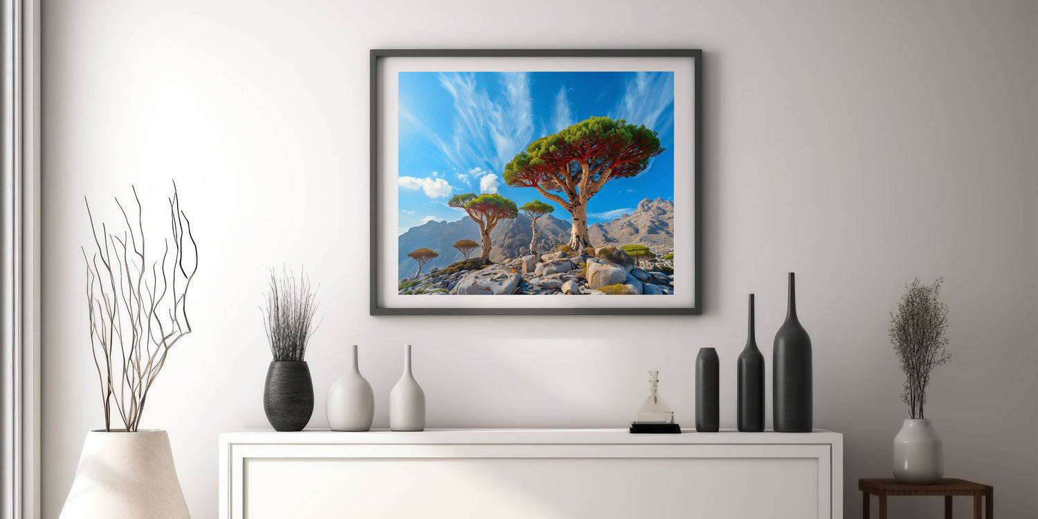 - High-quality Yemen wall art capturing the unique beauty of Socotra's landscapes