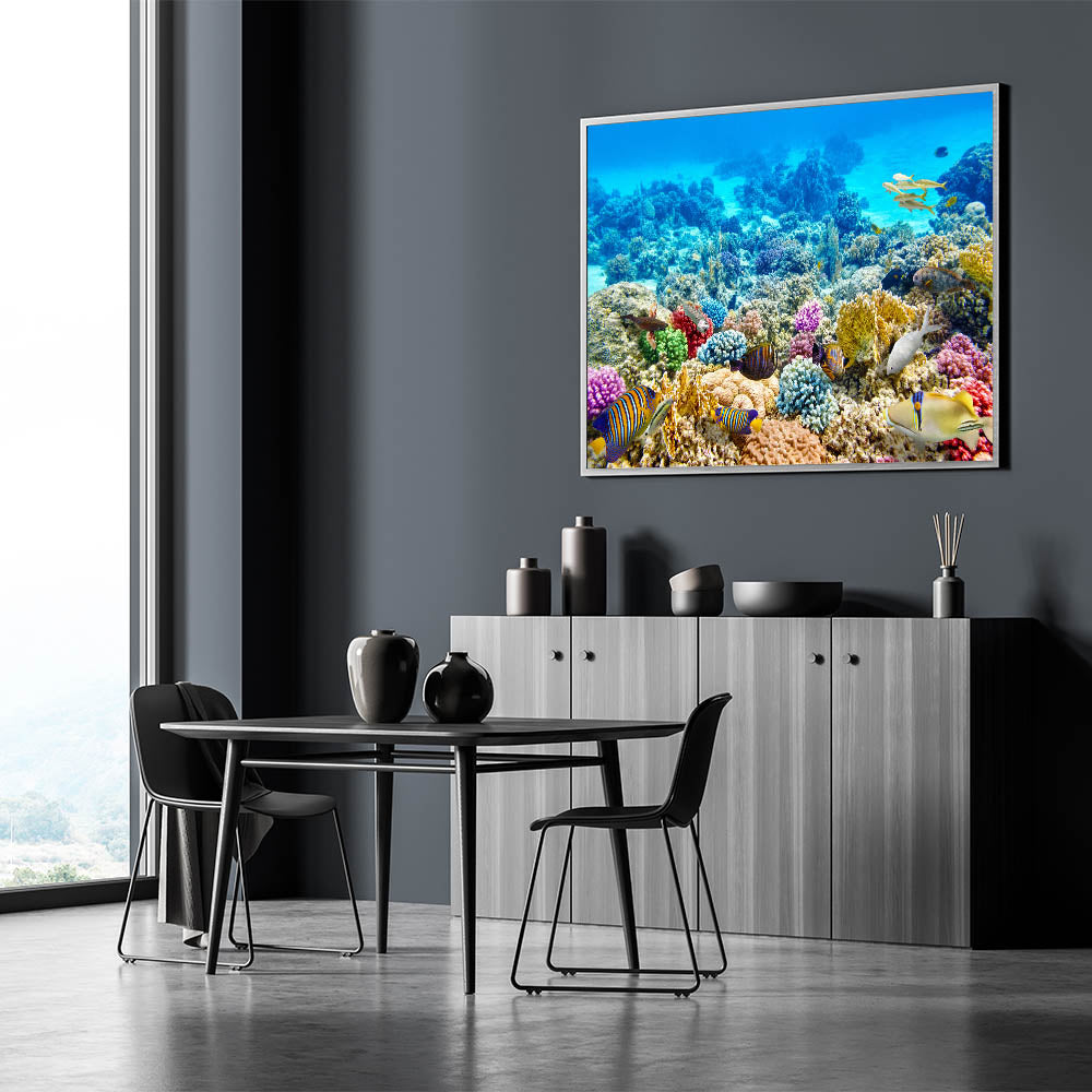 Experience the dazzling beauty of Australia’s Great Barrier Reef with this vibrant marine life wall art. Featuring a stunning array of colorful coral formations and exotic tropical fish, this artwork perfectly captures the diversity and wonder of the underwater world. Bring a splash of color and nature into your home with this unique piece, ideal for ocean enthusiasts and lovers of bright, lively decor.