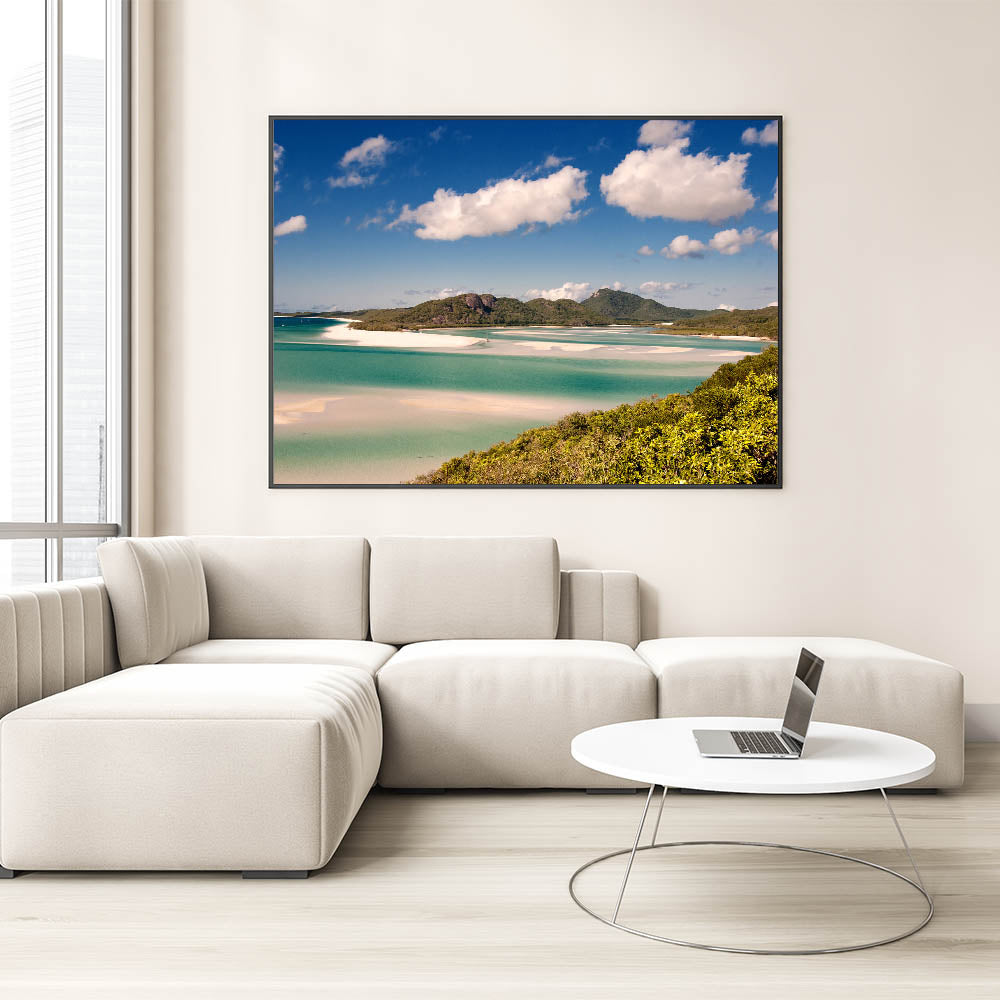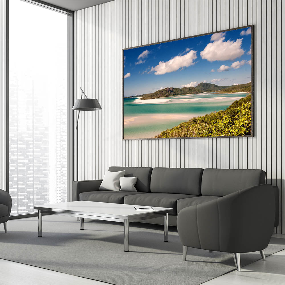 Bring the vibrant beauty of Australia's Great Barrier Reef into your home with this stunning wall art. Capturing the mesmerizing blend of turquoise waters, white sandy beaches, and lush green islands, this artwork offers a tranquil ocean scene perfect for any room. Whether you're a nature lover or simply want to infuse a tropical touch into your decor, this piece will elevate your space.