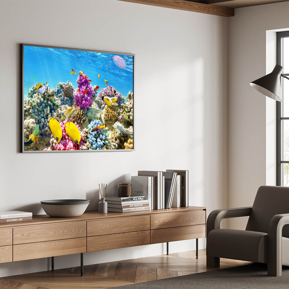 This piece of art brings the colorful vibrancy of the underwater world directly into your space. Its intricate details and vivid hues make it a stunning focal point in any room, whether it’s a living room, bedroom, or office. Choose your preferred size and frame to personalize your space with a touch of oceanic beauty.