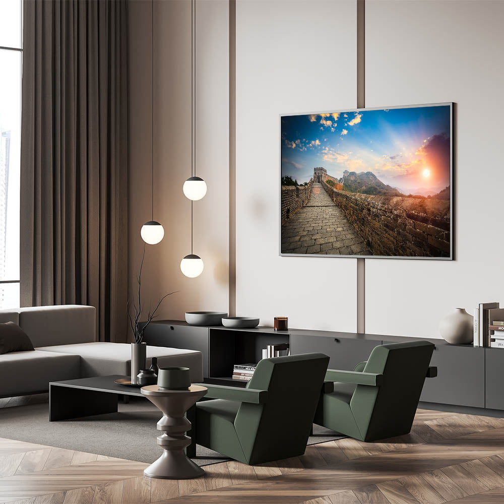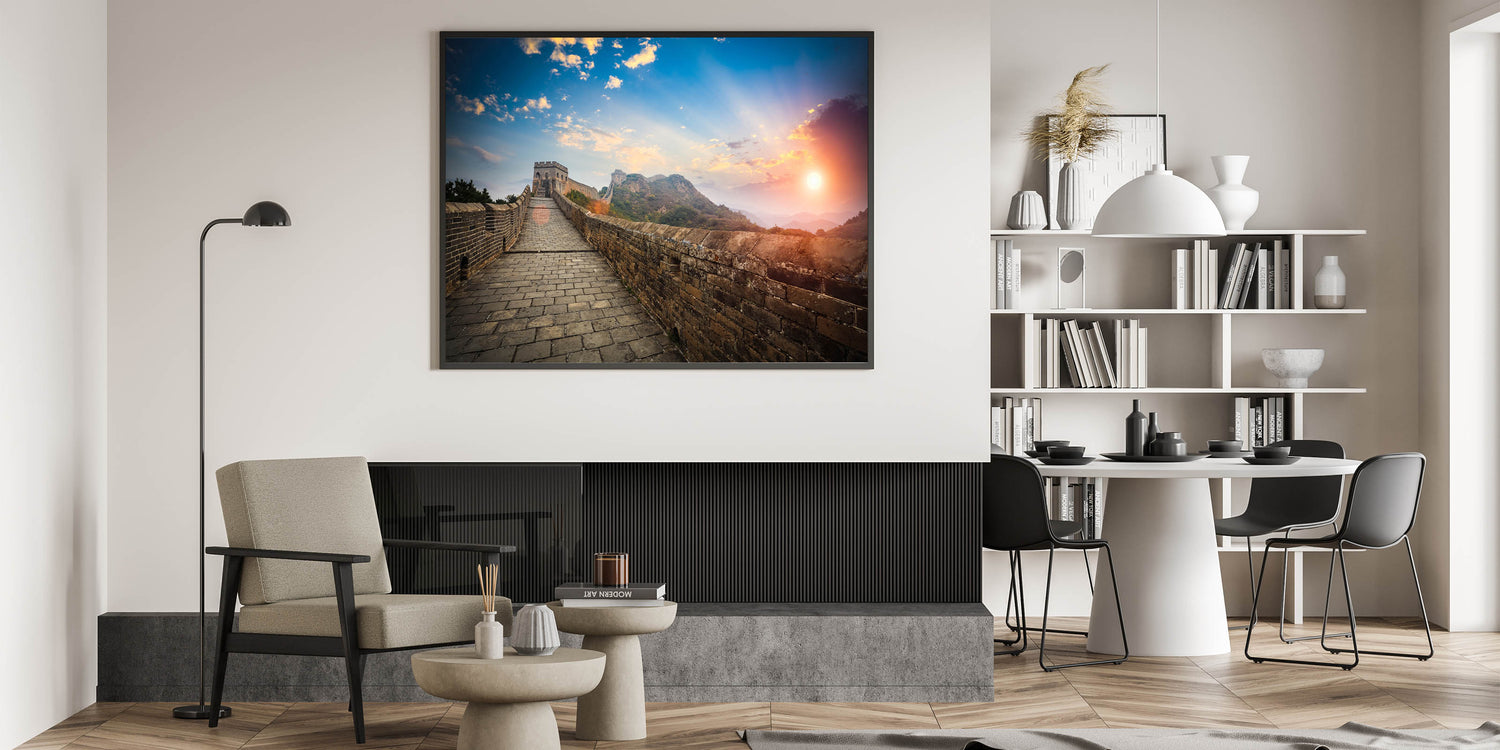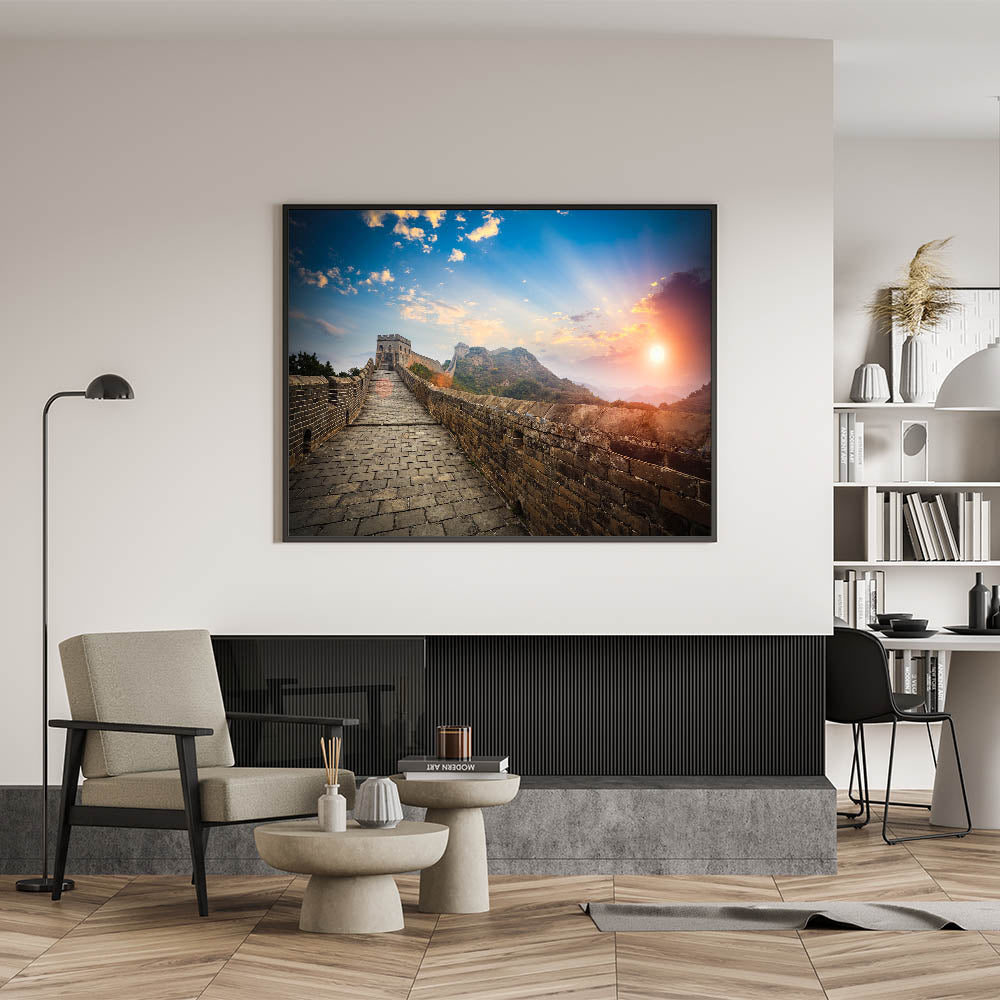 Let the iconic beauty of the Great Wall bring warmth and inspiration to your space. This stunning Chinese landscape at sunset will transform your room into a serene, picturesque environment.