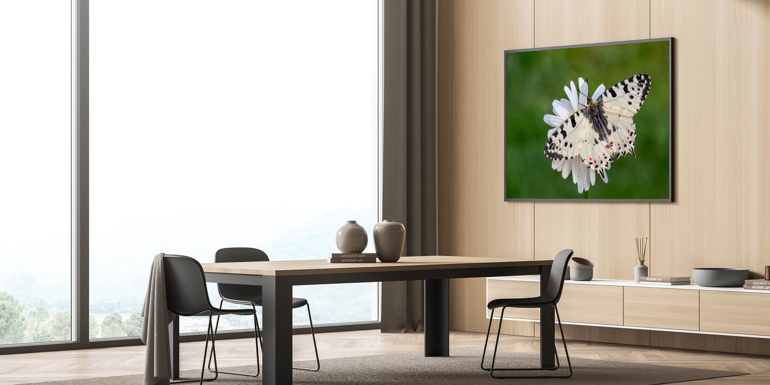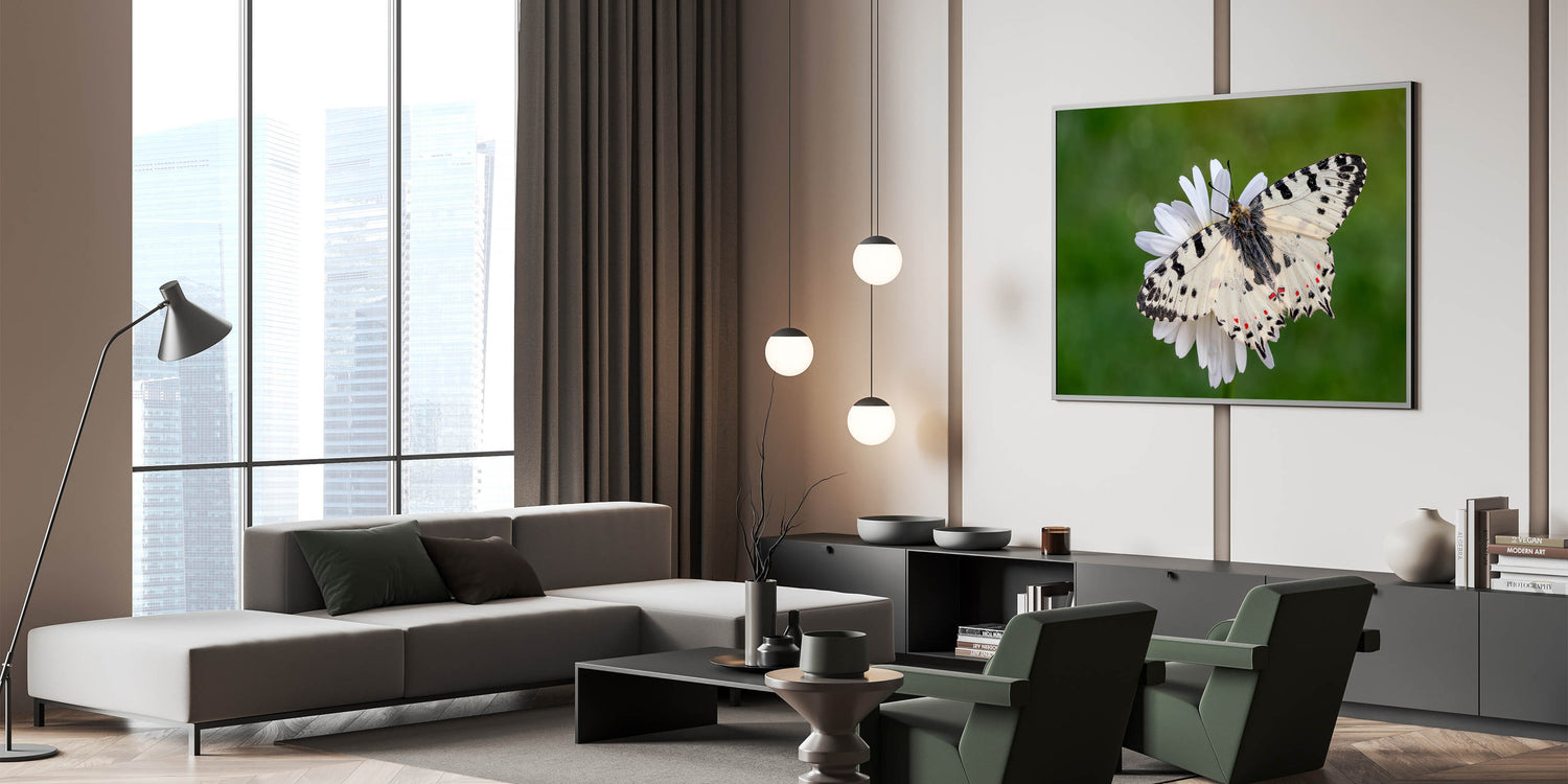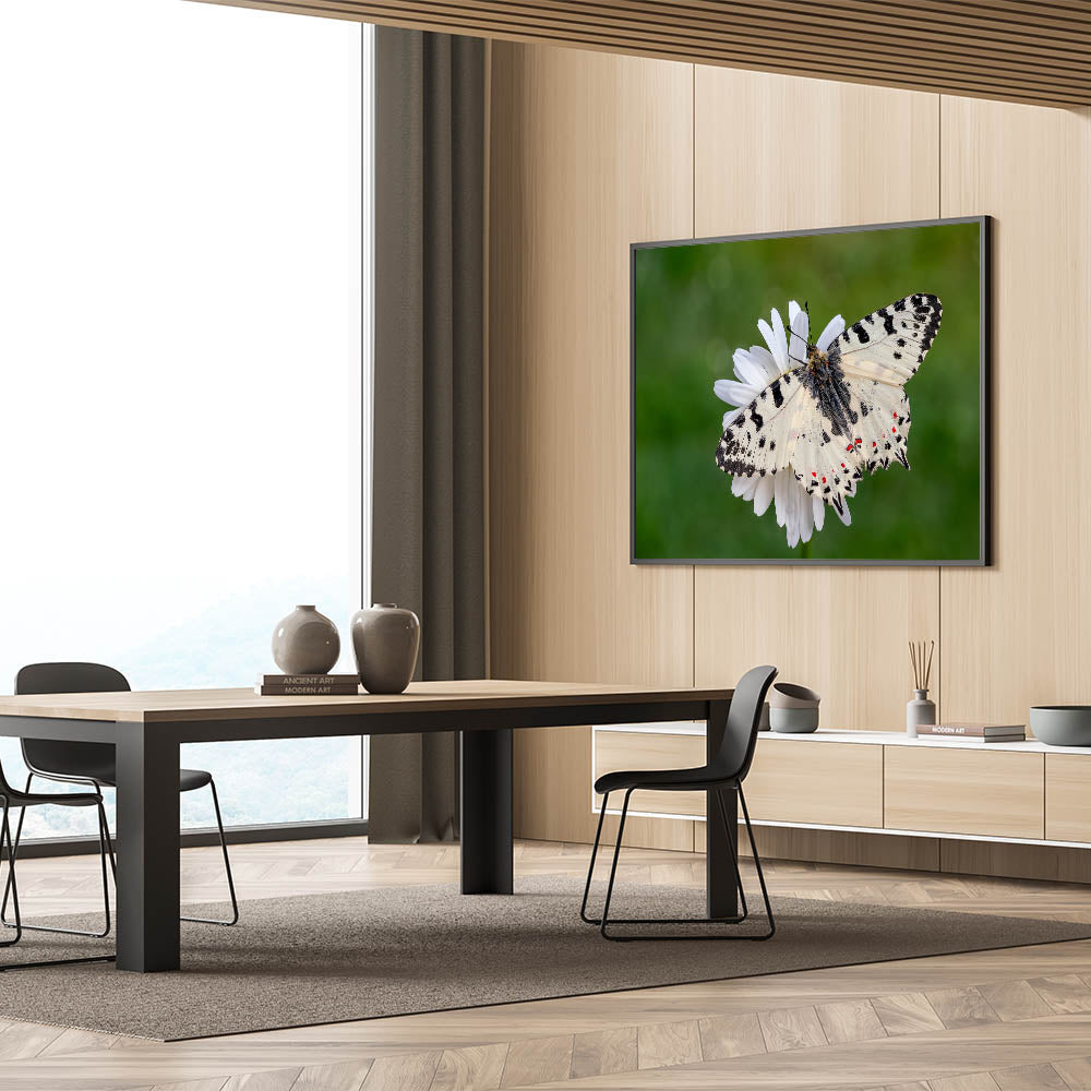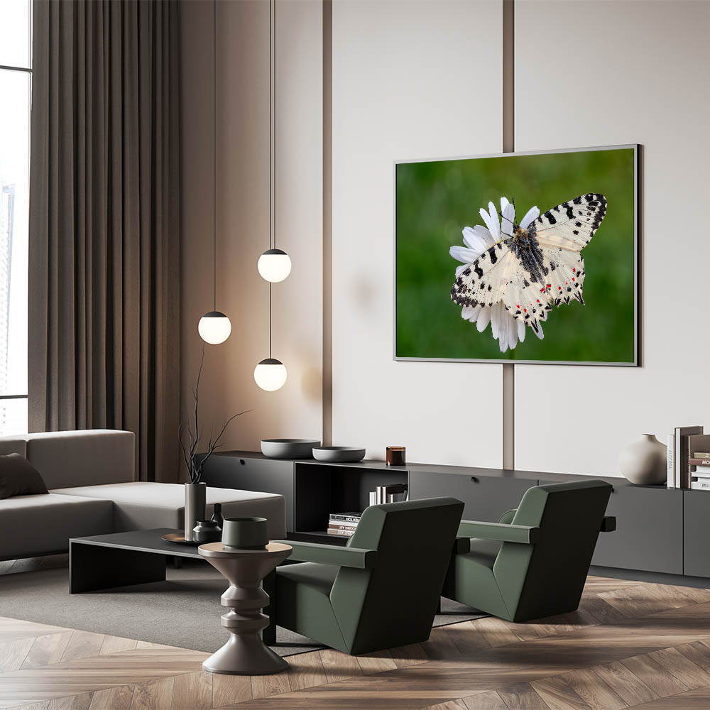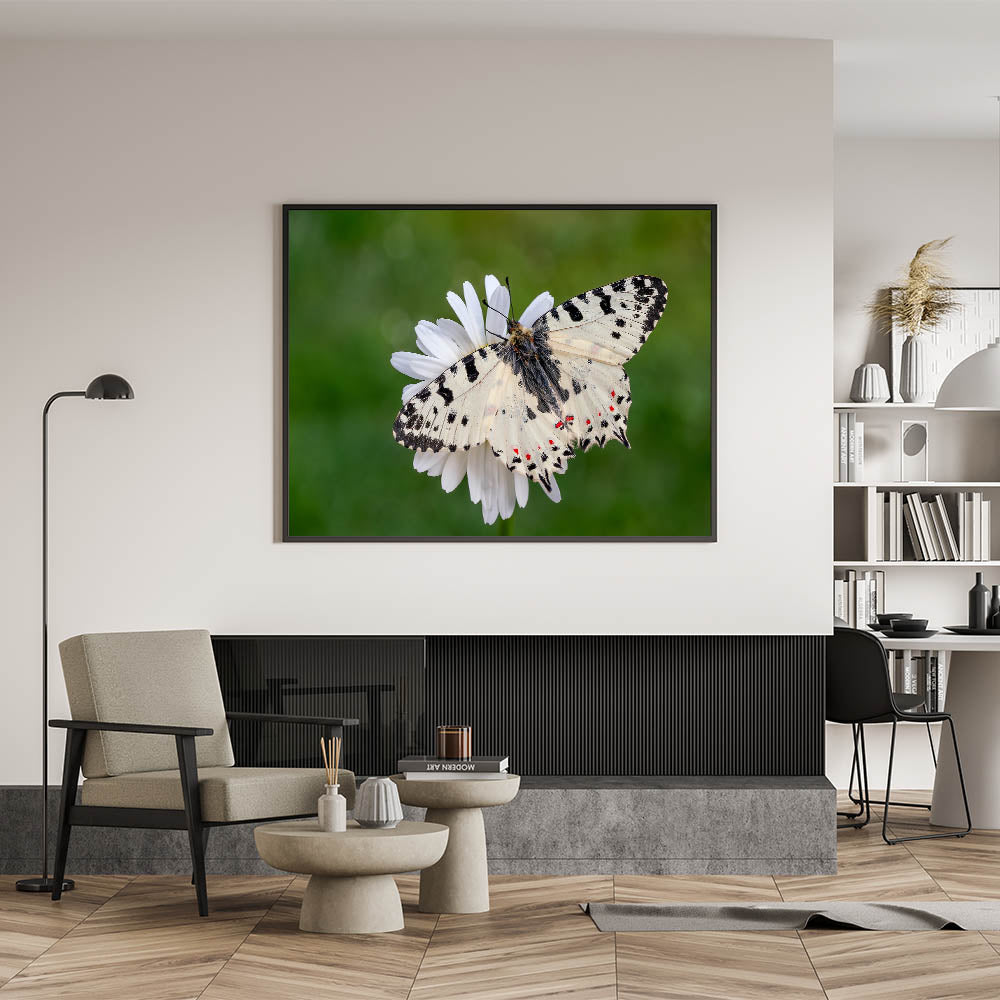 This butterfly macro photography piece is ideal for anyone looking to bring a sense of calm and elegance into their home decor. It celebrates the small wonders of nature and makes a striking visual statement on any wall.