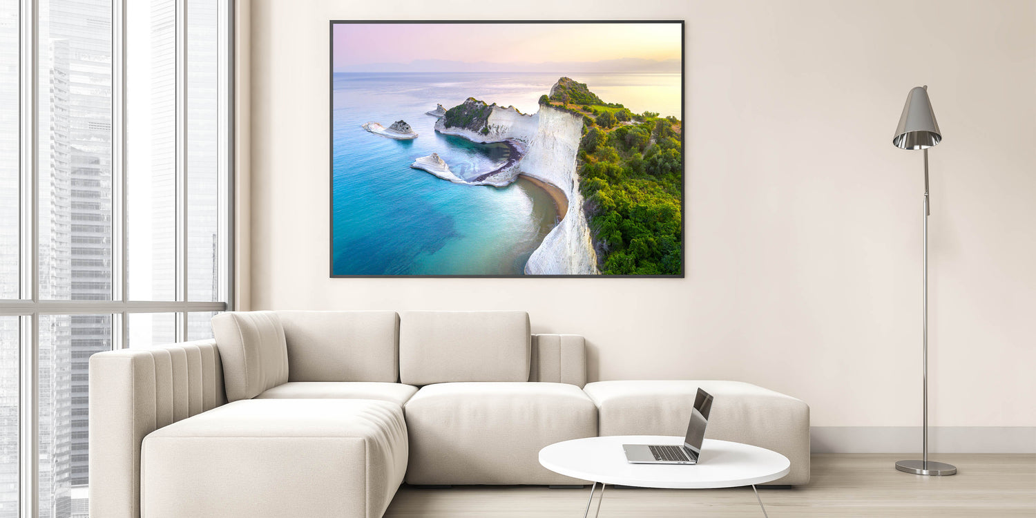 Bring the magic of Greece’s coastline into your home and let this artwork transform your space into a serene escape. Whether you’ve visited Corfu or dream of exploring its stunning cliffs and bays, this piece will evoke the peaceful ambiance of the Mediterranean.