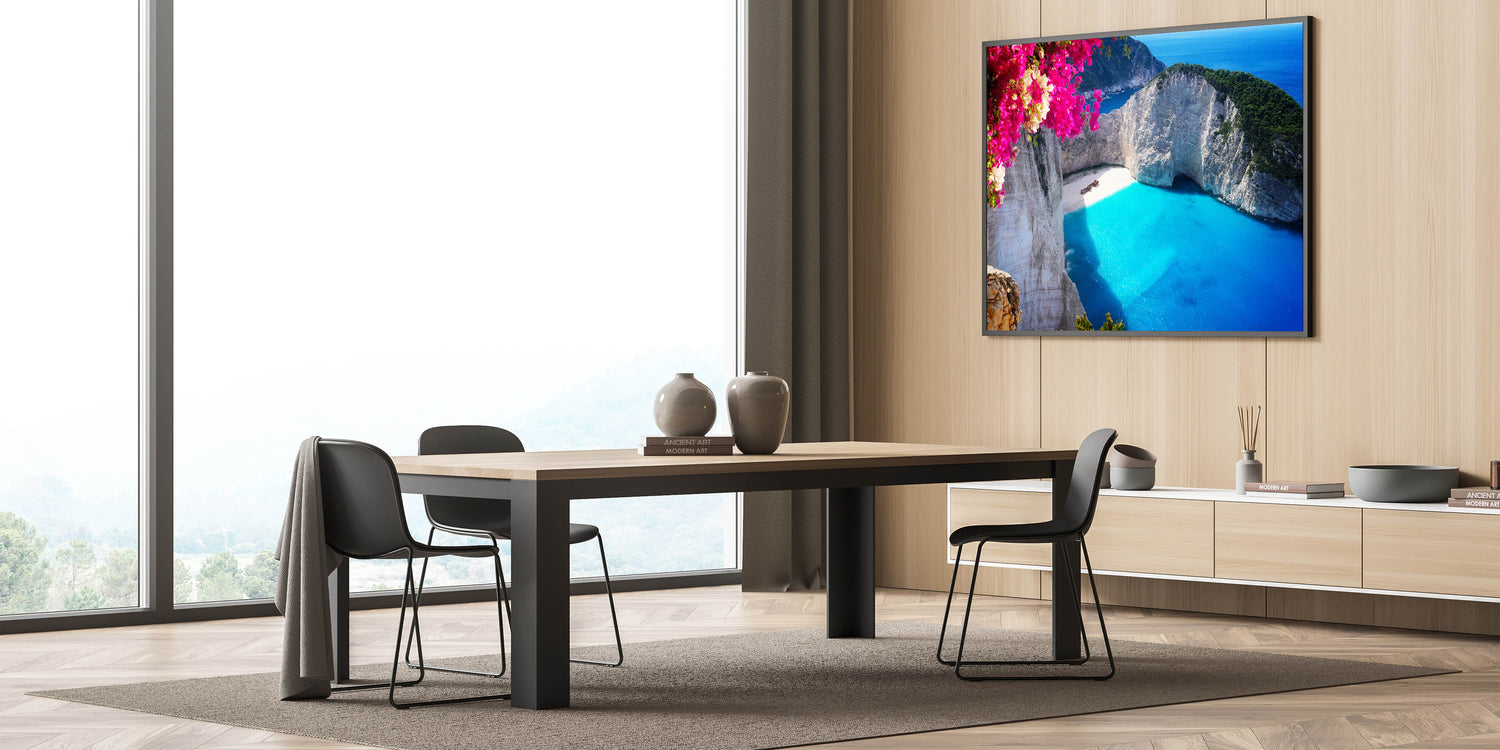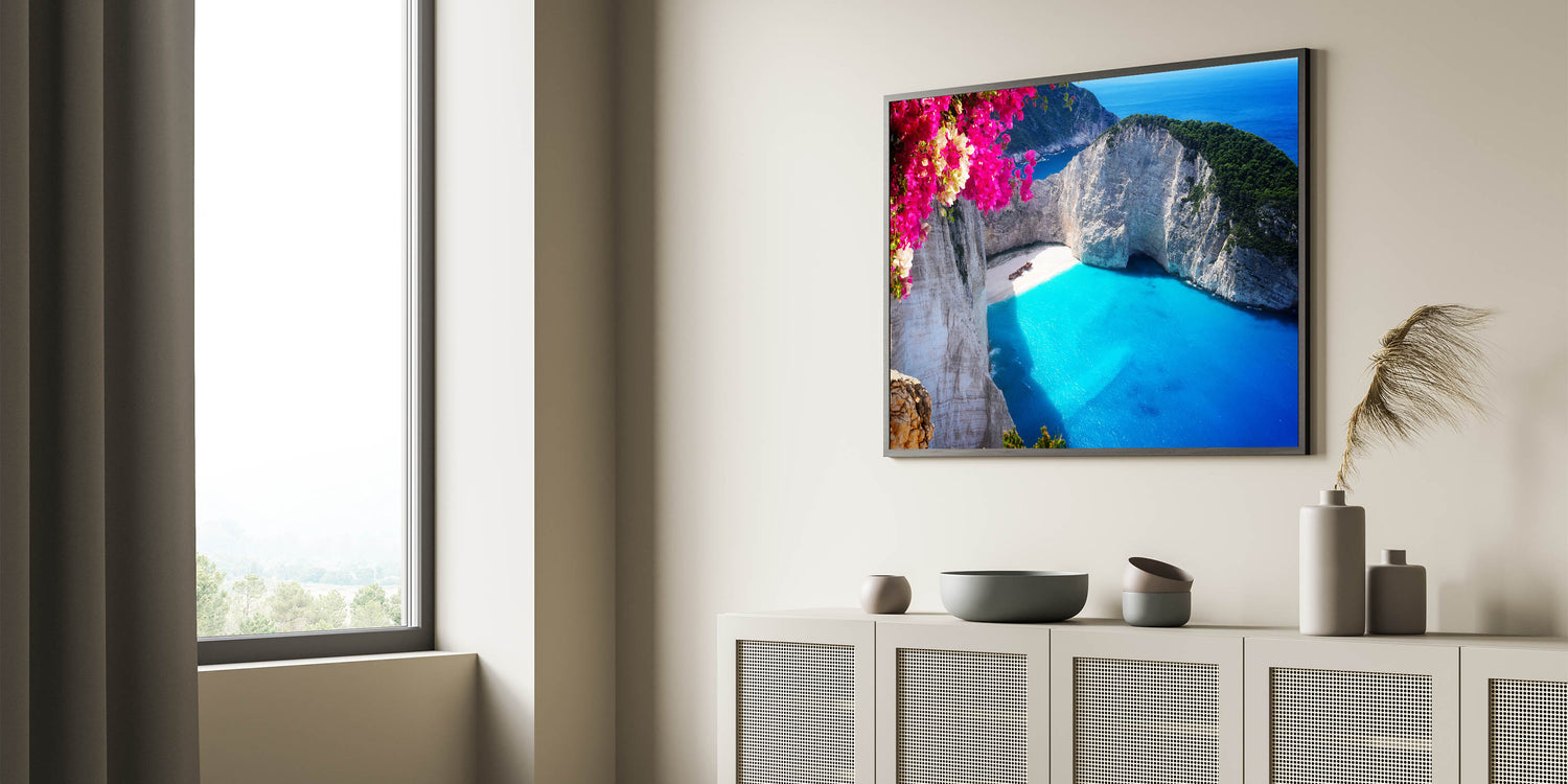 Let the beauty of Navagio Beach and the vibrant bougainvillea bring a sense of tranquility and elegance to your space. This artwork is perfect for anyone who loves Mediterranean landscapes and the peaceful charm of Greece’s coastline.
