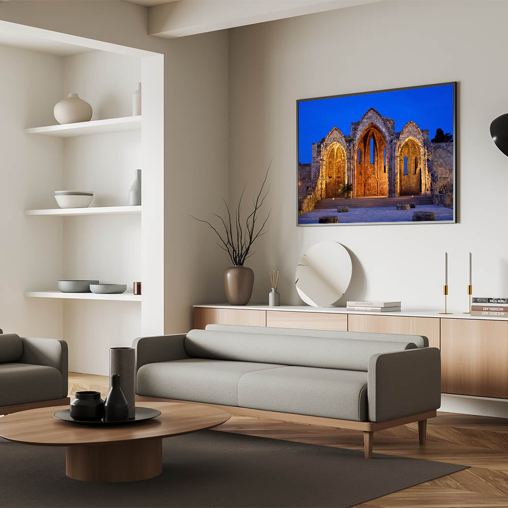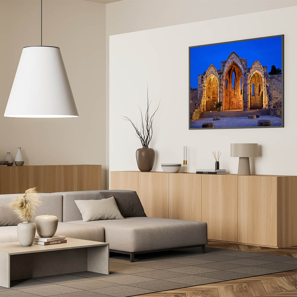 Whether you're drawn to the timeless history of Rhodes Island or simply want a dramatic and historical focal point for your space, this Rhodes Island Canvas will captivate with its elegance and grandeur.