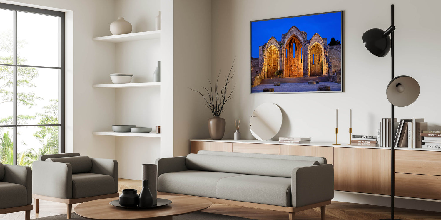 • Sharp details and rich colors: This Rhodes Photography Print highlights the intricate stonework and glowing textures of ancient architecture.