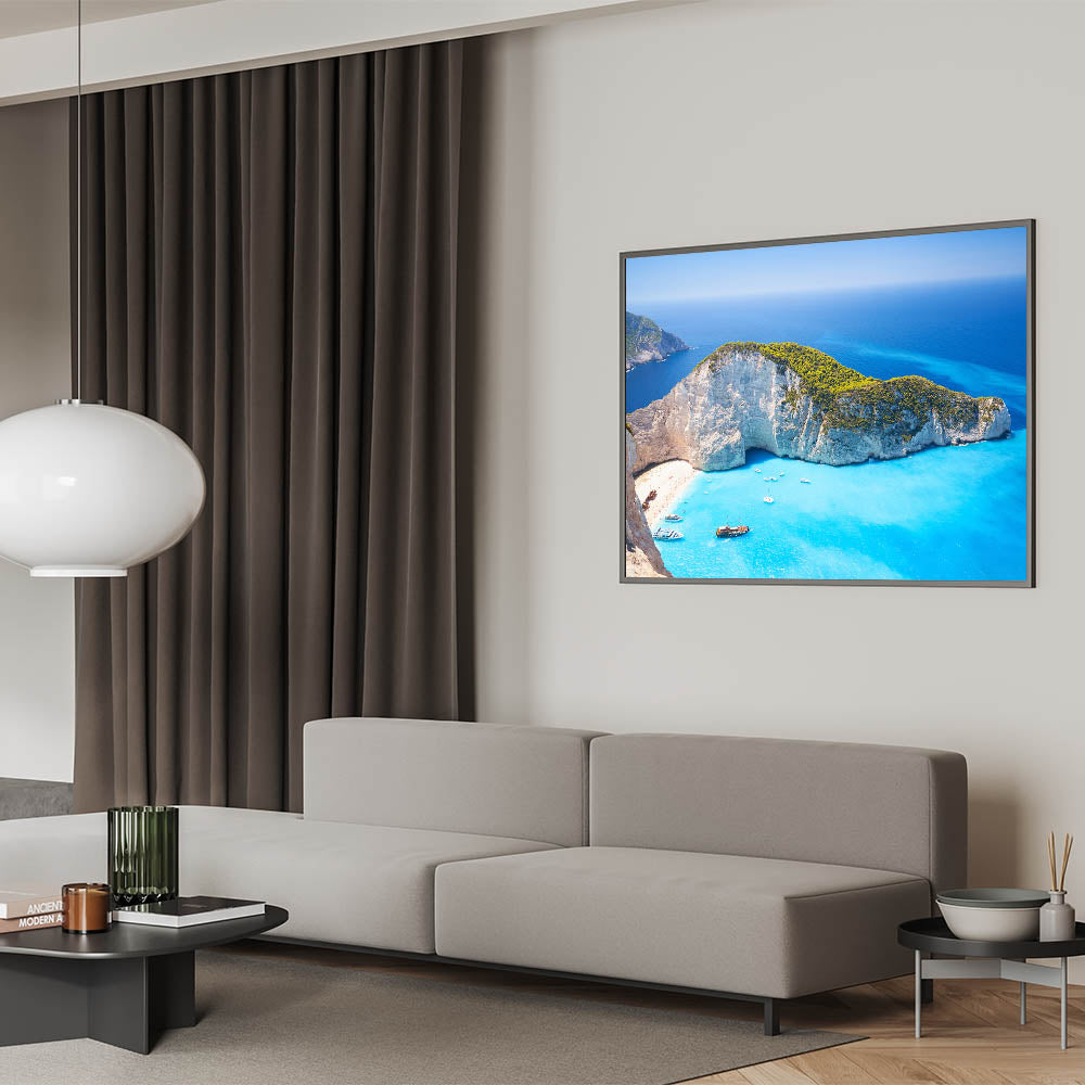 Let the crystal-clear waters and unique beauty of Navagio Beach transport you to the sun-drenched shores of Greece. This art print is perfect for anyone who wants to relive their Greece vacation memories or simply enjoy the tranquil scenery of the Greek Islands.
