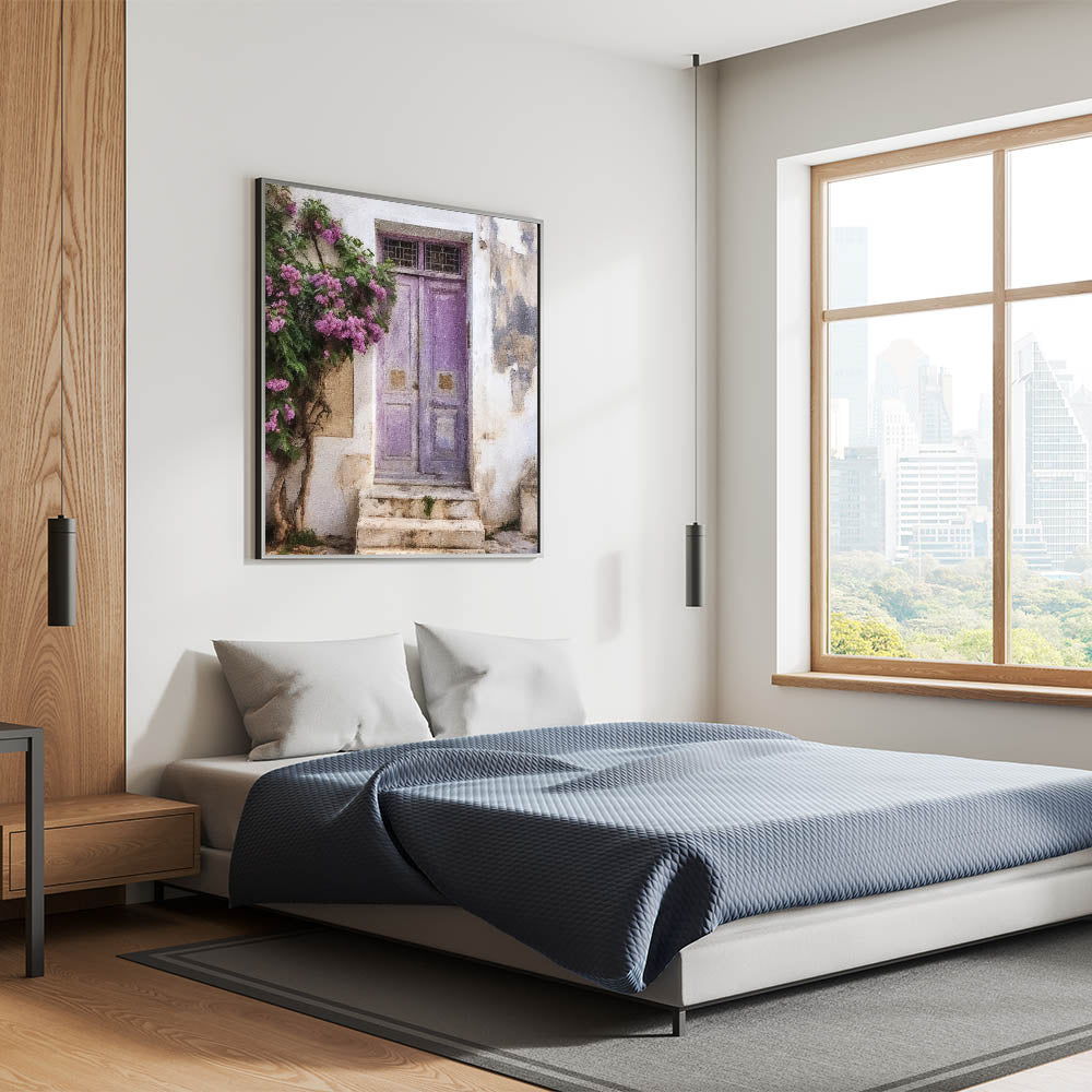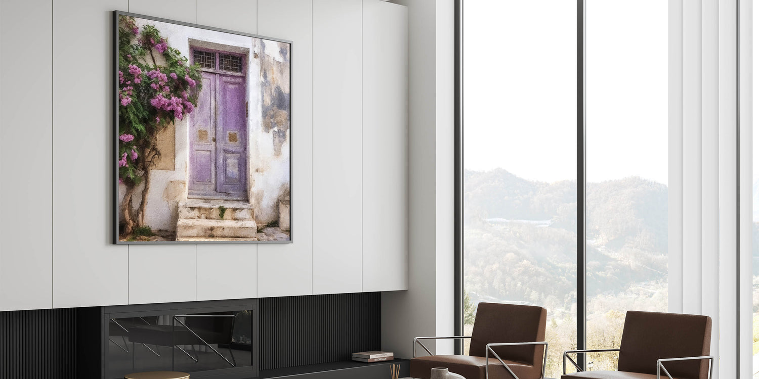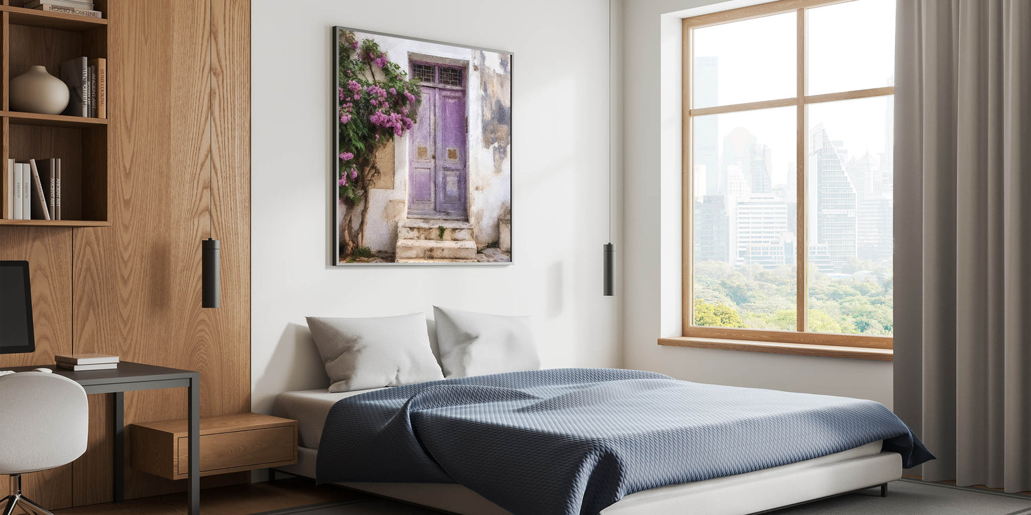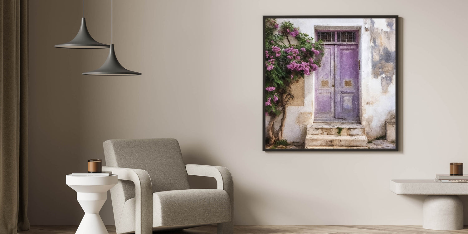 - High-quality Greek door prints, crafted with meticulous attention to detail and available in various materials (Stretched Canvas, Framed Canvas, Acrylic Glass).