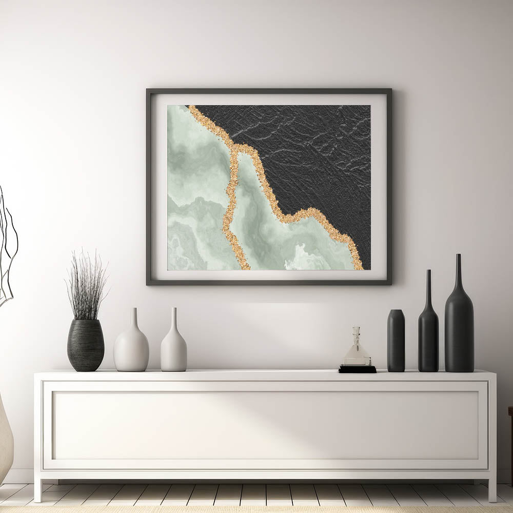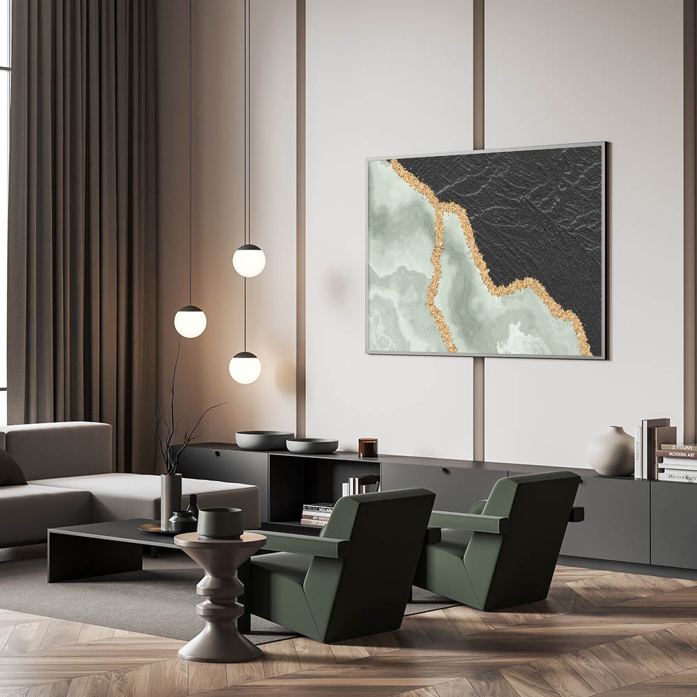 Elevate your decor with our Abstract Line Art in Black, Green, and Gold. This captivating piece features dynamic strokes and intricate lines, blending bold black with soothing green and luxurious gold accents. The unique color combination and contemporary design make this artwork a perfect addition to any modern interior.