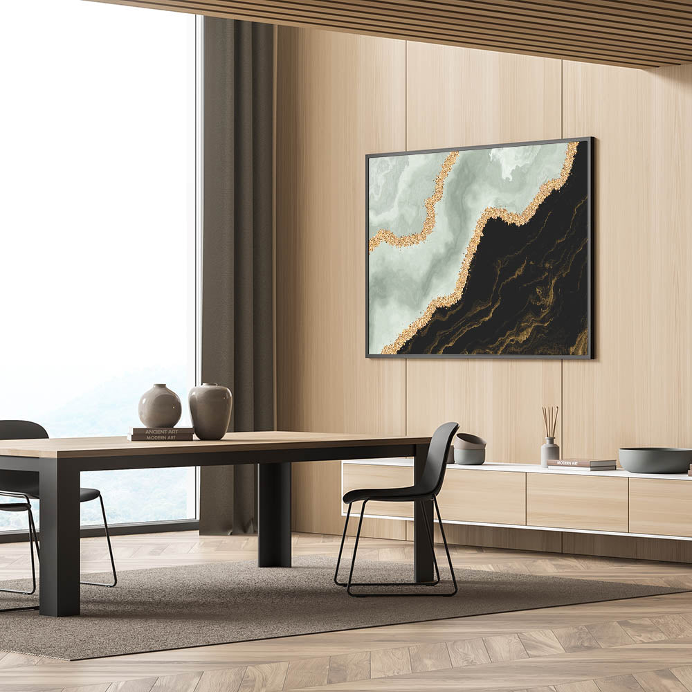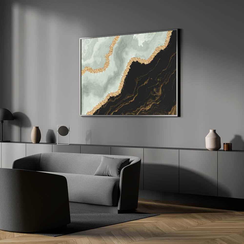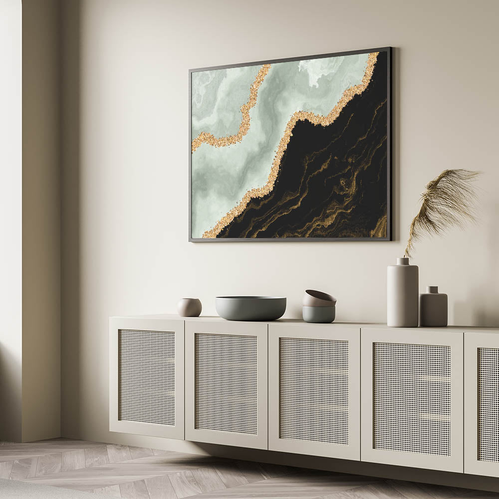 Enhance your decor with our Abstract Strokes and Lines Art in Black, Green, and Gold. This captivating piece features dynamic strokes and intricate lines, blending bold black and soothing green with luxurious gold accents. The unique color combination and contemporary design make this artwork a perfect addition to any modern interior.