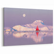 Greenland Nature Canvas - Red Sailboat with Arctic Ice and Full Moon