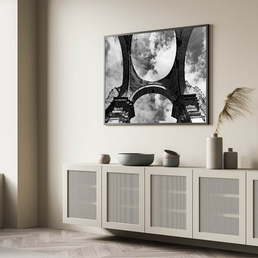 Discover the architectural marvel of Tikal with our "Majestic Stone Arches" artwork, a standout piece in our Tikal Temple Artwork series. This stunning black and white photograph captures the intricate stone arches of an ancient temple, set against a dramatic sky, evoking a sense of history and mystery.
