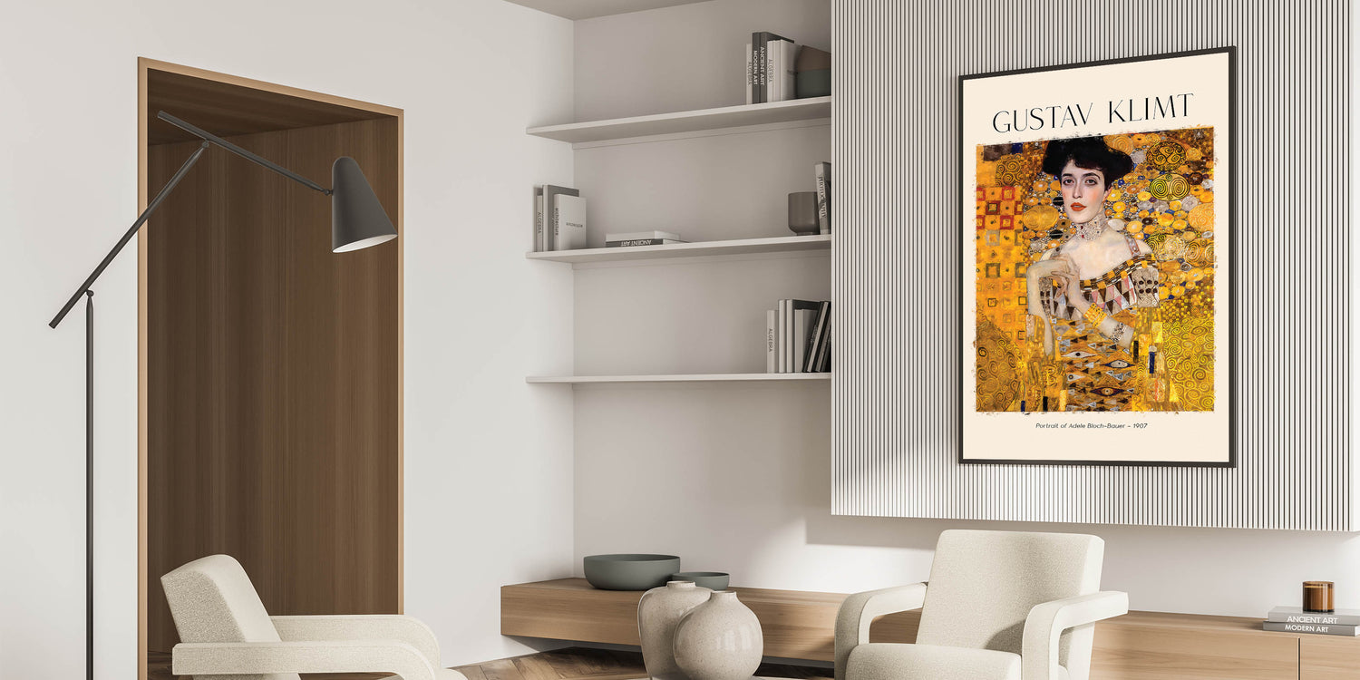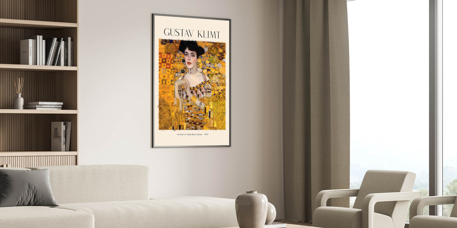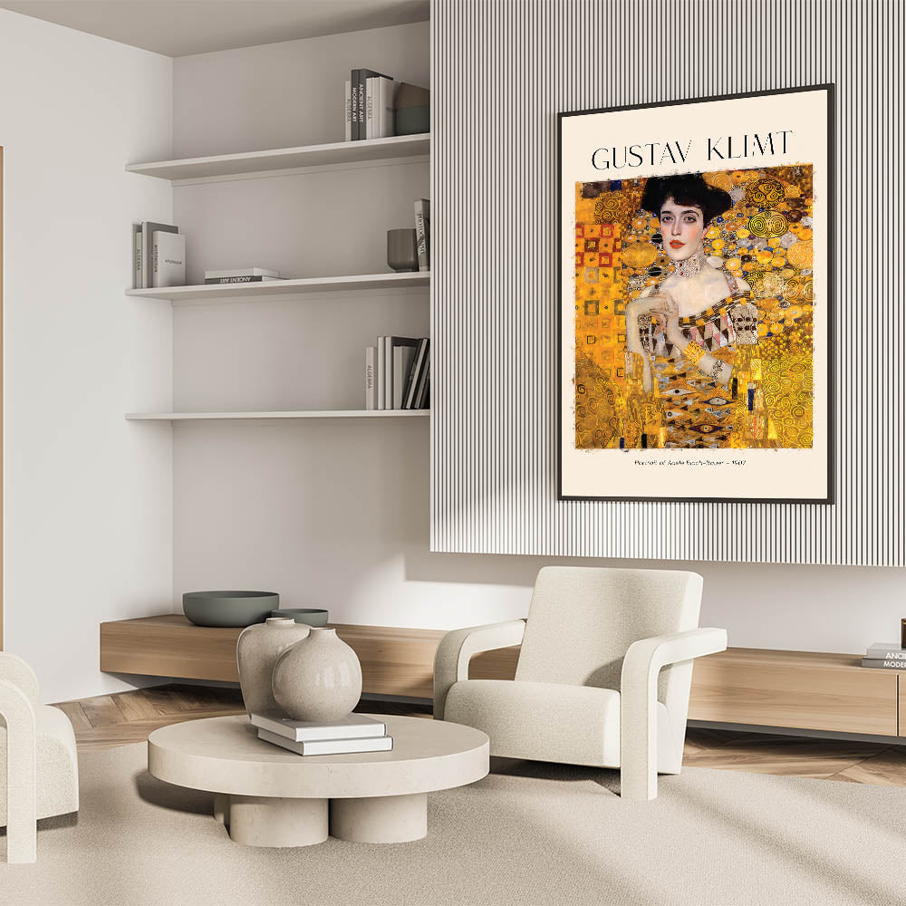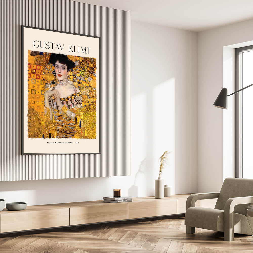 Immerse your space in the elegance and opulence of Gustav Klimt’s “Portrait of Adele Bloch-Bauer” (1907), one of his most celebrated masterpieces. Also known as “The Woman in Gold”, this portrait is a remarkable example of Klimt’s golden phase, combining intricate patterns with shimmering gold leaf to create a breathtaking work of art. The detailed textures and luxurious gold tones reflect Klimt’s expertise in blending symbolist art with decorative elegance.