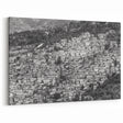 - Monochromatic Elegance: The black and white color palette emphasizes the details of the densely packed homes, creating a visually compelling scene