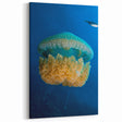 - Underwater Elegance: The bold contrast of the jellyfish’s bright colors against the deep blue ocean creates a visually stunning centerpiece for any room