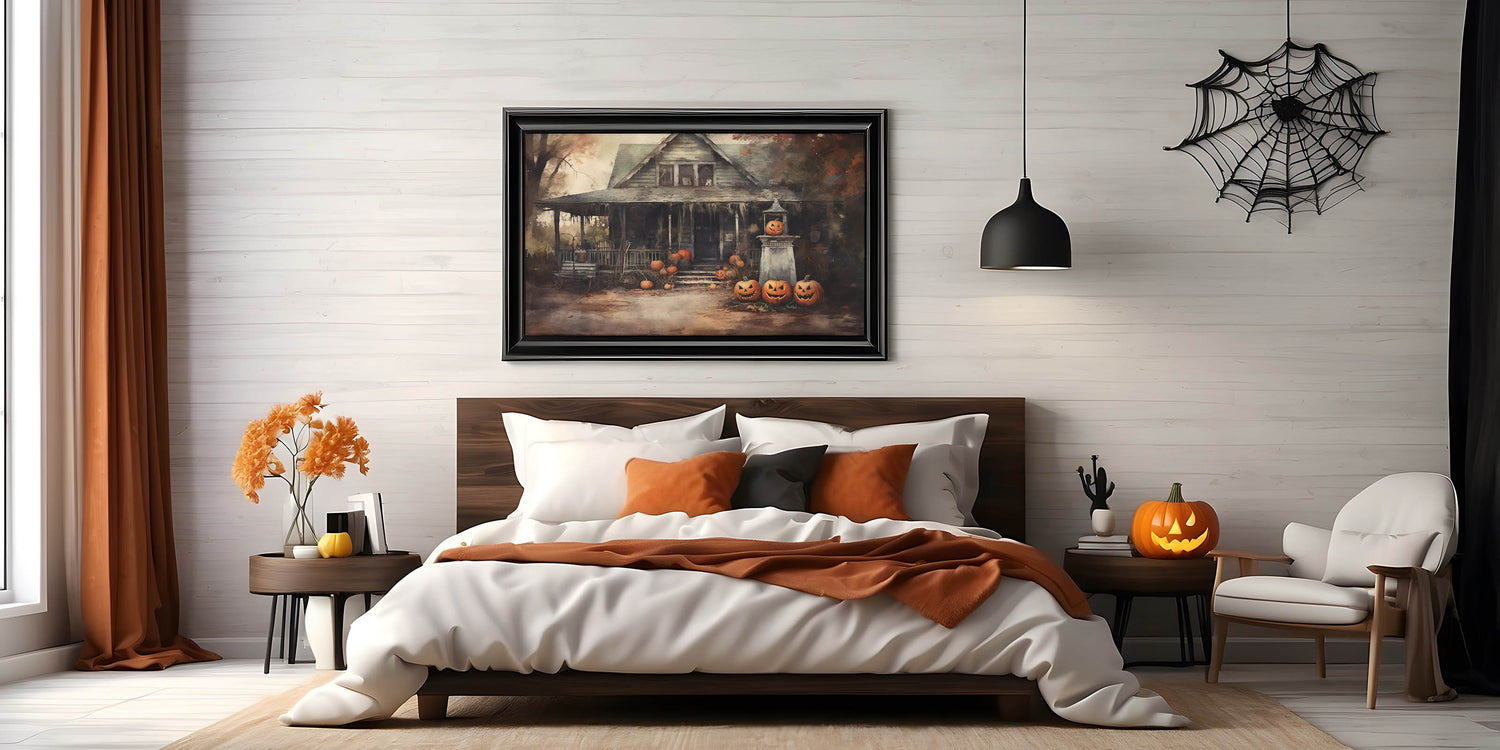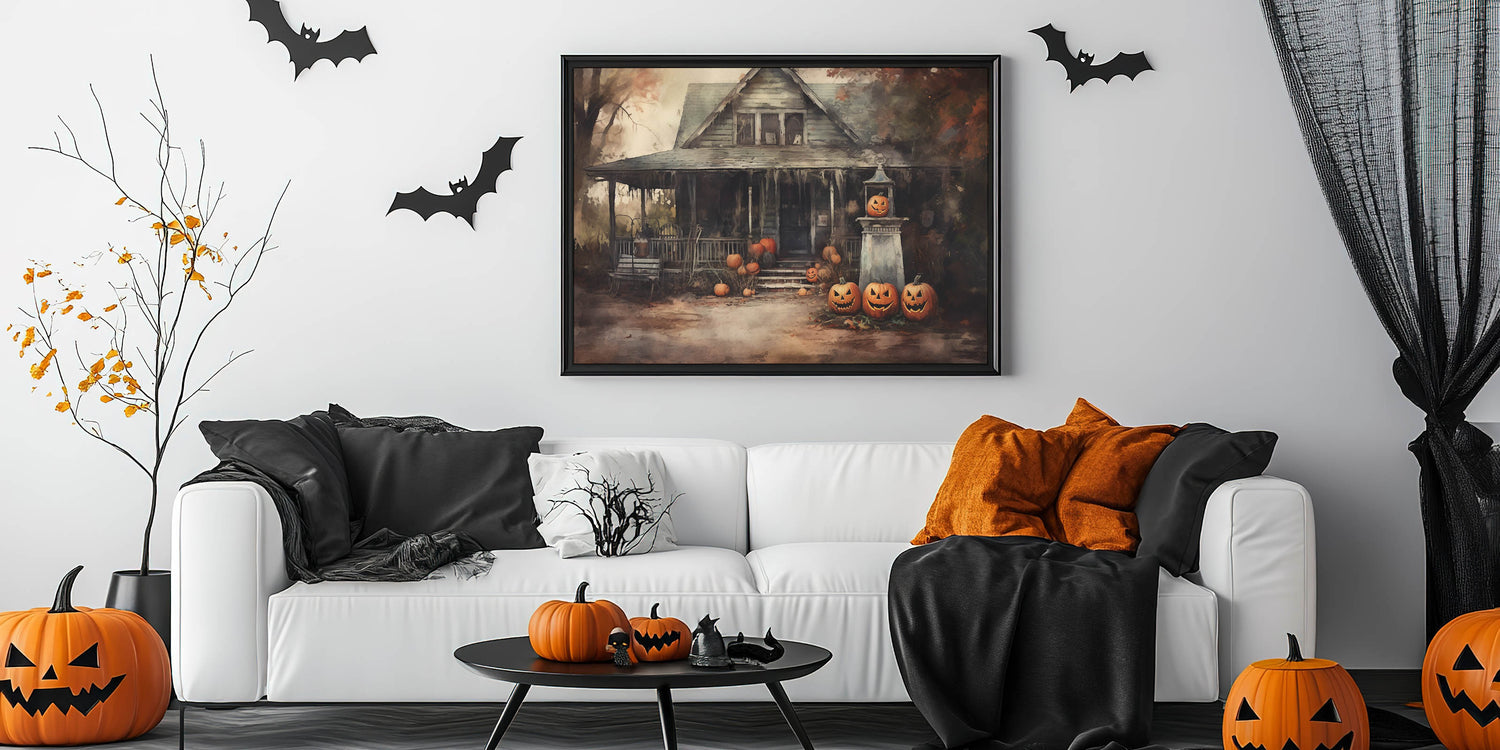 - Dark and moody color tones enhance the Halloween wall decorations vibe