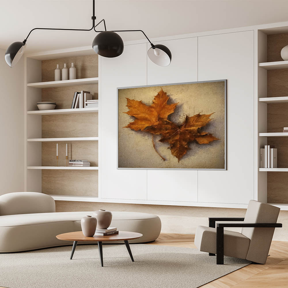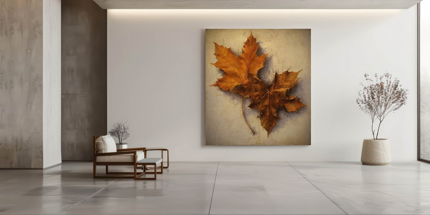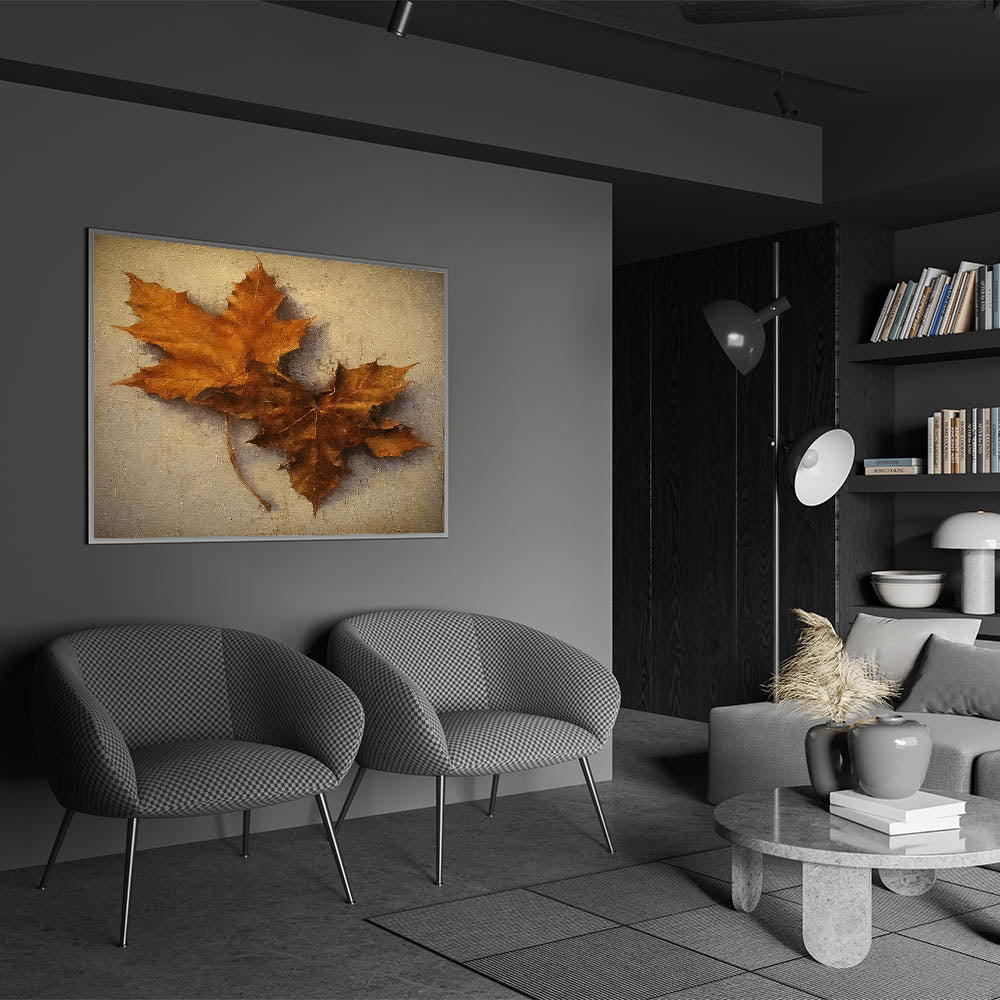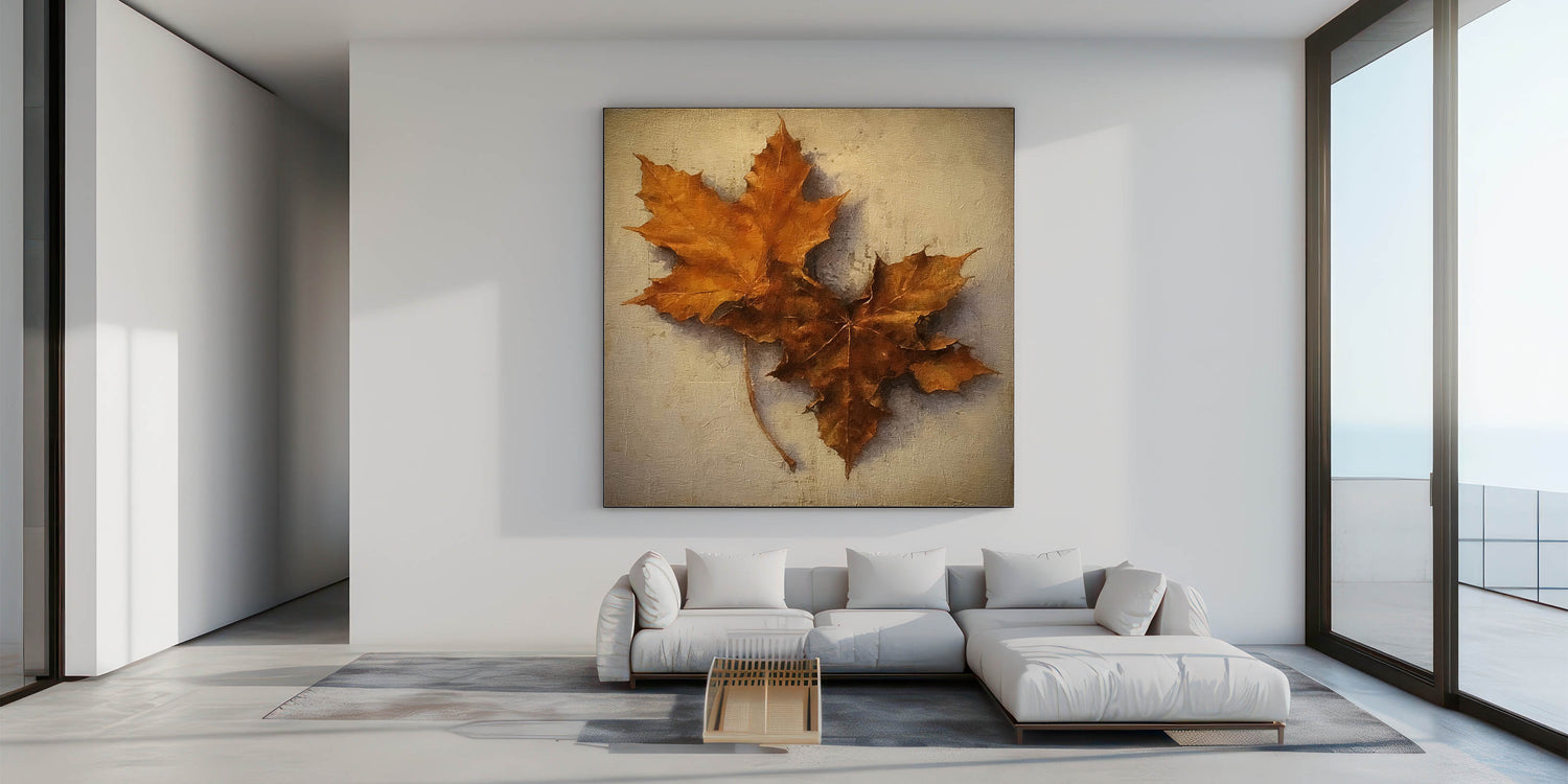 Capture the essence of fall with this beautifully detailed Halloween canvas art, featuring two rustic autumn leaves in warm, earthy tones. The vintage-style painting enhances the seasonal charm, making it an ideal choice for Halloween wall decor that seamlessly blends into any autumn-inspired space.